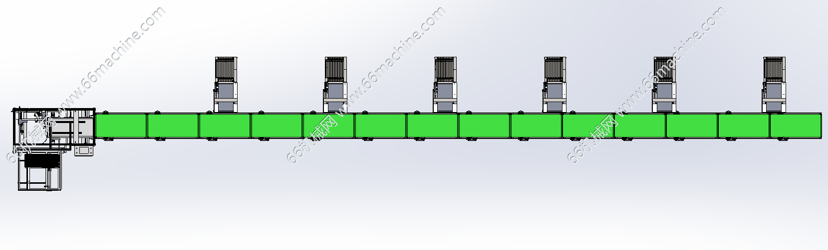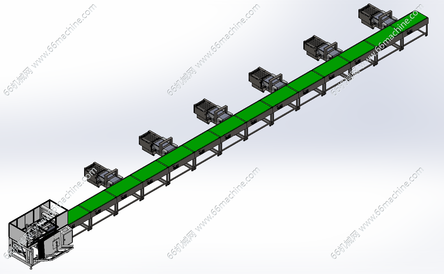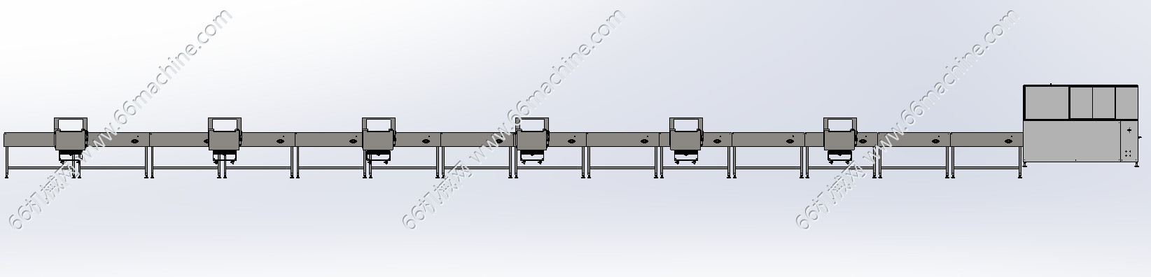 本模型为自动开箱、捆扎线,主要由开箱机、皮带输送机、捆扎机及可分流滚筒线组成,用于自动开箱、人工或机器人将产品装箱后再捆扎后出料,该包装线通用性强,欢迎参考!