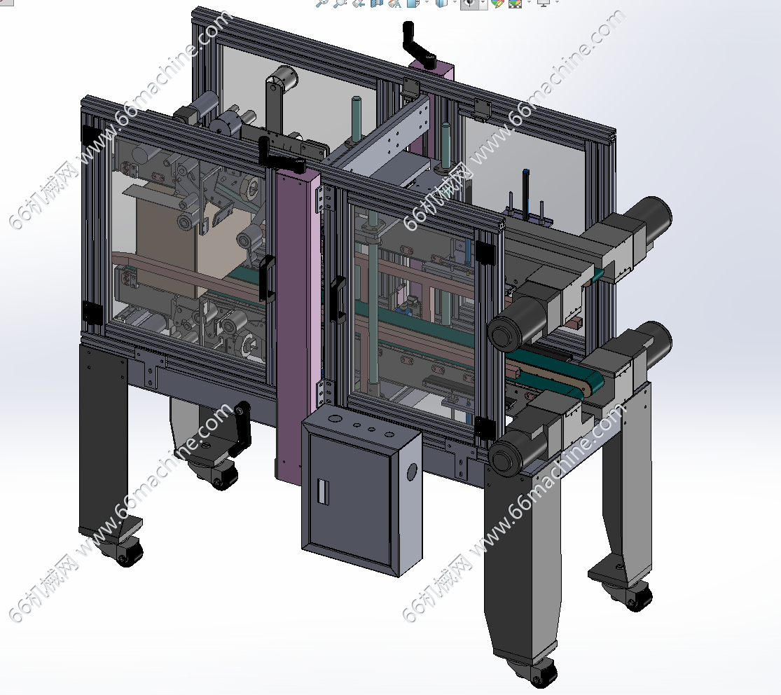 本模型为全自动角边封箱机,同时上下左右四处封胶带,毛刷及扫摆配合粘贴胶带,原按照实际生产做的设计,其中机芯处有待加工后验证,未生产样机,有兴趣的可以下载做修改。该款非标自动化设备图纸完整。【注意:该款角边封箱机是封箱子四个角边的,请区别于一字封箱机,不相同】