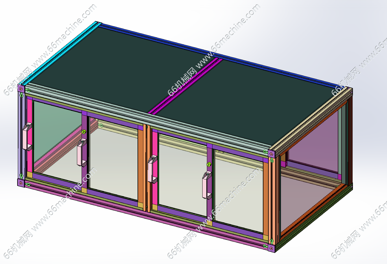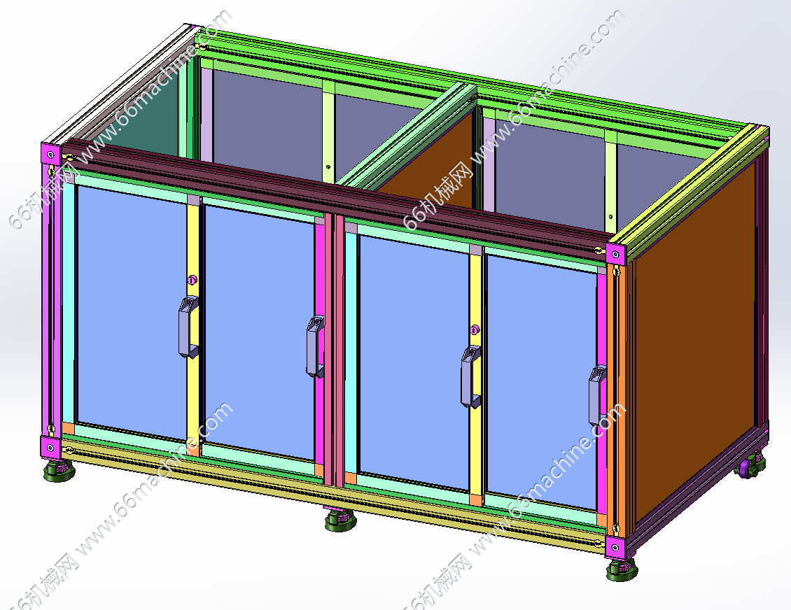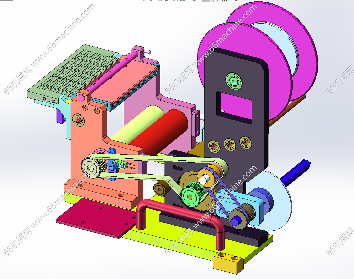 本模型为某企业自动贴标机,主要由下机架、机罩、送标机构、间距可调式载具输送线、三轴吸取移栽模组组成,工作流程:产品由载具输送线流入,送标机构出标,然后由三轴吸取移栽模组吸取标签并粘贴至载具内的产品上,欢迎下载参考!