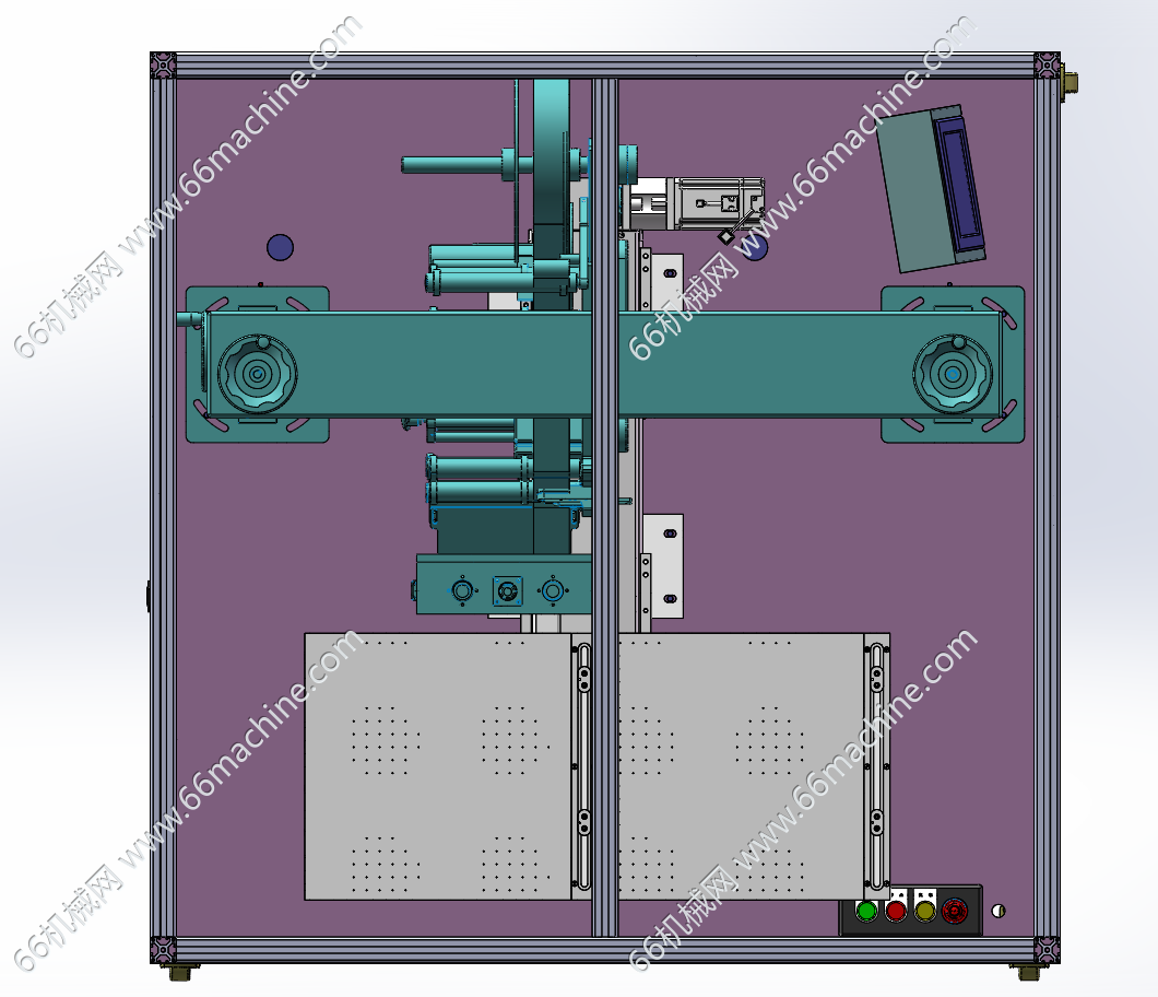 本模型为真空吸附贴标机(贴膜机),产品放置在真空吸附盘上,通过负压将产品牢牢固定住,X/Y轴带着产品向前移动,通过贴标/贴膜头对产品进行多位置贴标/贴膜,适用于屏幕、面板等贴膜/贴标作业,可供大家参考!