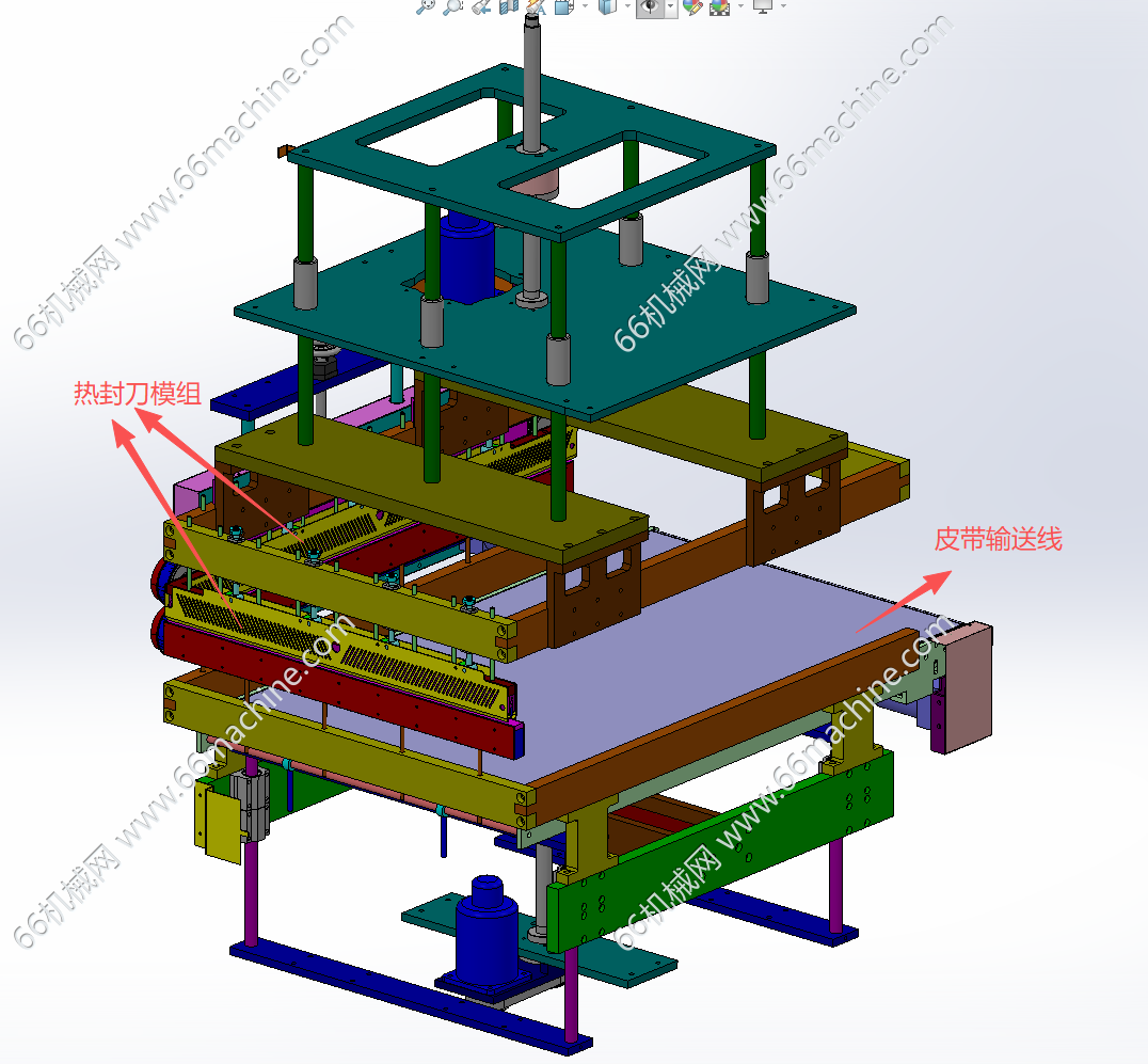 本模型为通用型薄膜包覆热封包装机,主要由机架、薄膜供料模组、薄膜撑开组件、热封模组及输送线等组成,可用于各种产品的覆膜、热封口作业,本设备通用性强,仅供大家参考!