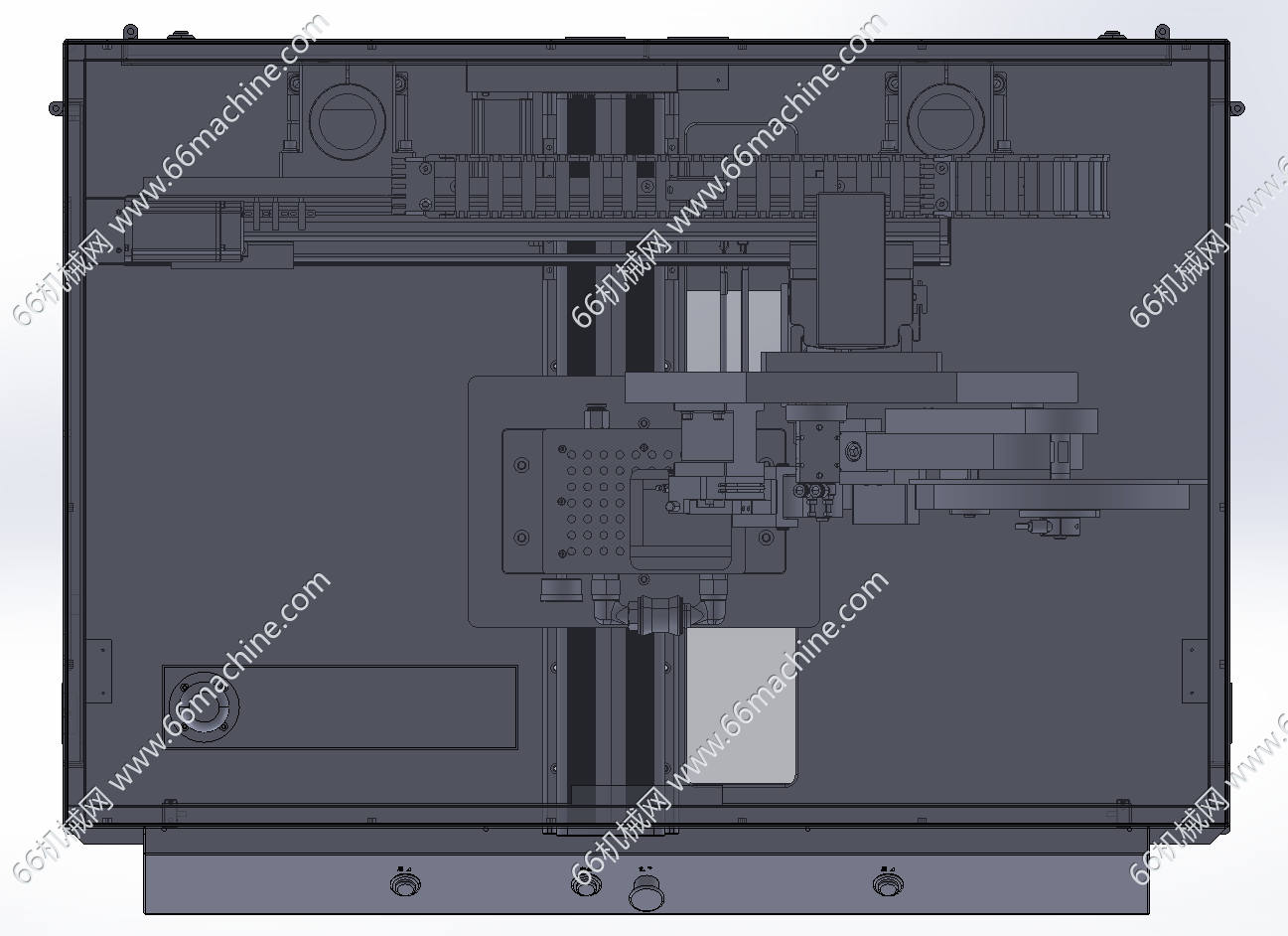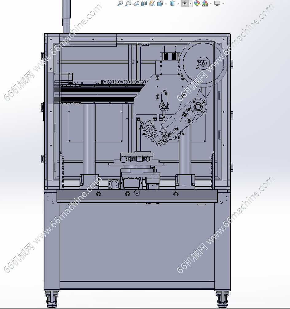 本模型为自动贴胶带机,将产品放入到真空吸盘上定位,X轴移动带动胶带机头,移动到产品上方,机头动作,将胶带贴敷与产品上,通过载台Y轴及R轴,可对产品实现直线贴胶带,欢迎参考!