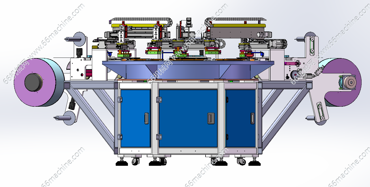 本模型为某企业六工位转盘贴膜机,主要由机架、六工位转盘、薄膜供料模组及贴膜模组等组成,适用于各种薄膜的自动贴膜作业,贴膜前后产品采用人工或机械手上下料,可供大家参考!