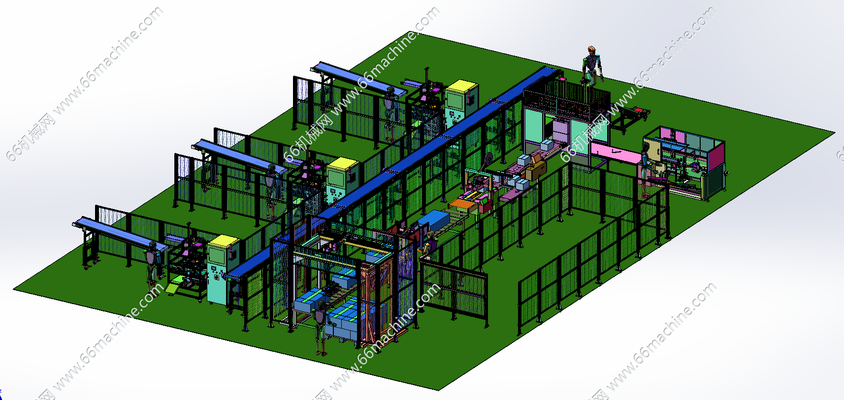 本模型为检测、入盒、装箱、码垛打包流水线,包含皮带输送线、滚筒输送线、纸盒成型机、桁架式吸取移送机、封箱机等组成,通用性强,可用于各种产品的检测、入盒、装箱、码垛打包作业,方案布局,可供大家参考!