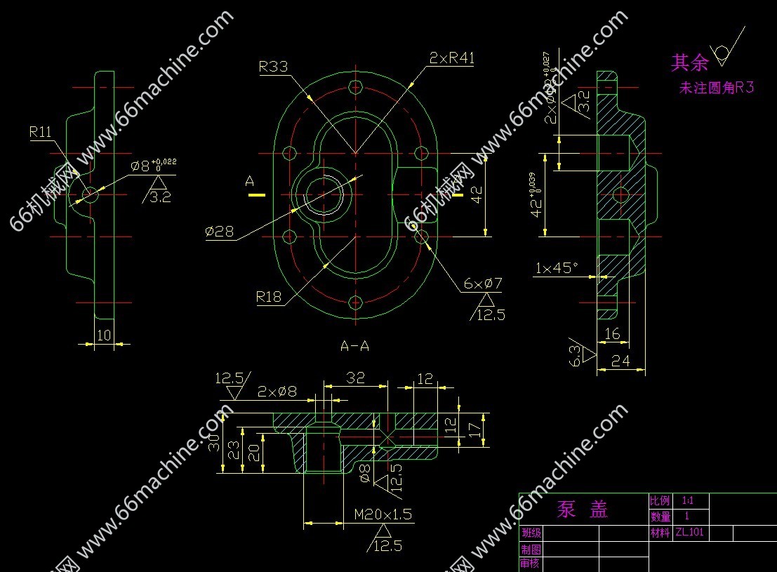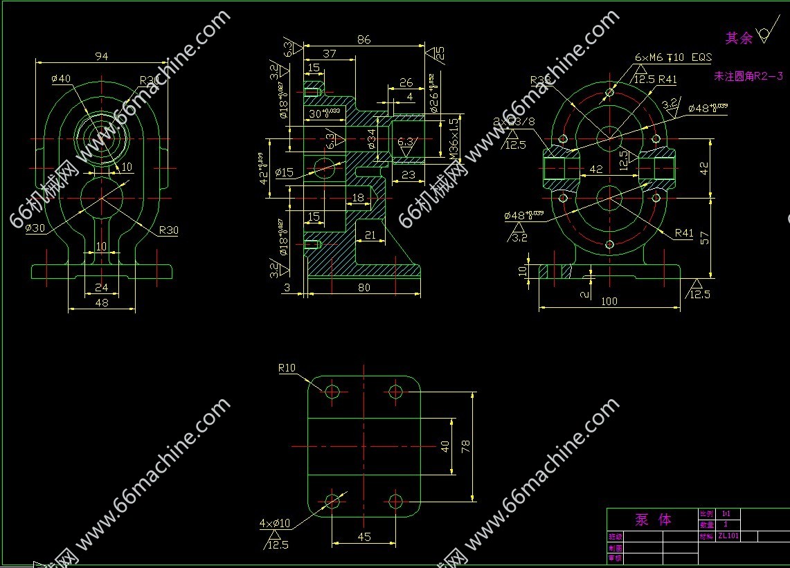 外啮合直齿轮泵是一种常用的液压泵,它将机械能转化为液压能,它通过啮合的两齿轮来完成油液的吸收和压出的过程,为液压系统输送一定流量和压力的液体。必然会有液压油的泄漏、困油以及噪声和振动现象的发生。径向力如何减小一直是从事高压齿轮泵研制的科技人员的研究重点,变位齿轮的设计是本设计中弱化径向力得得重要体现,并且对轴和轴承的负载进行受力分析。对以齿轮泵的漏油现象,低压外啮合齿轮泵通过提高加工精度等措施予以缓解,而对于本设计的中高压外啮合齿轮泵采用的是采取加浮动轴套的措施解决。困油现象必然造成齿轮泵强烈的振动和噪声,很大程度上影响齿轮泵的工作效率及使用寿命。齿轮泵设计对于密封性有着极高的要求。