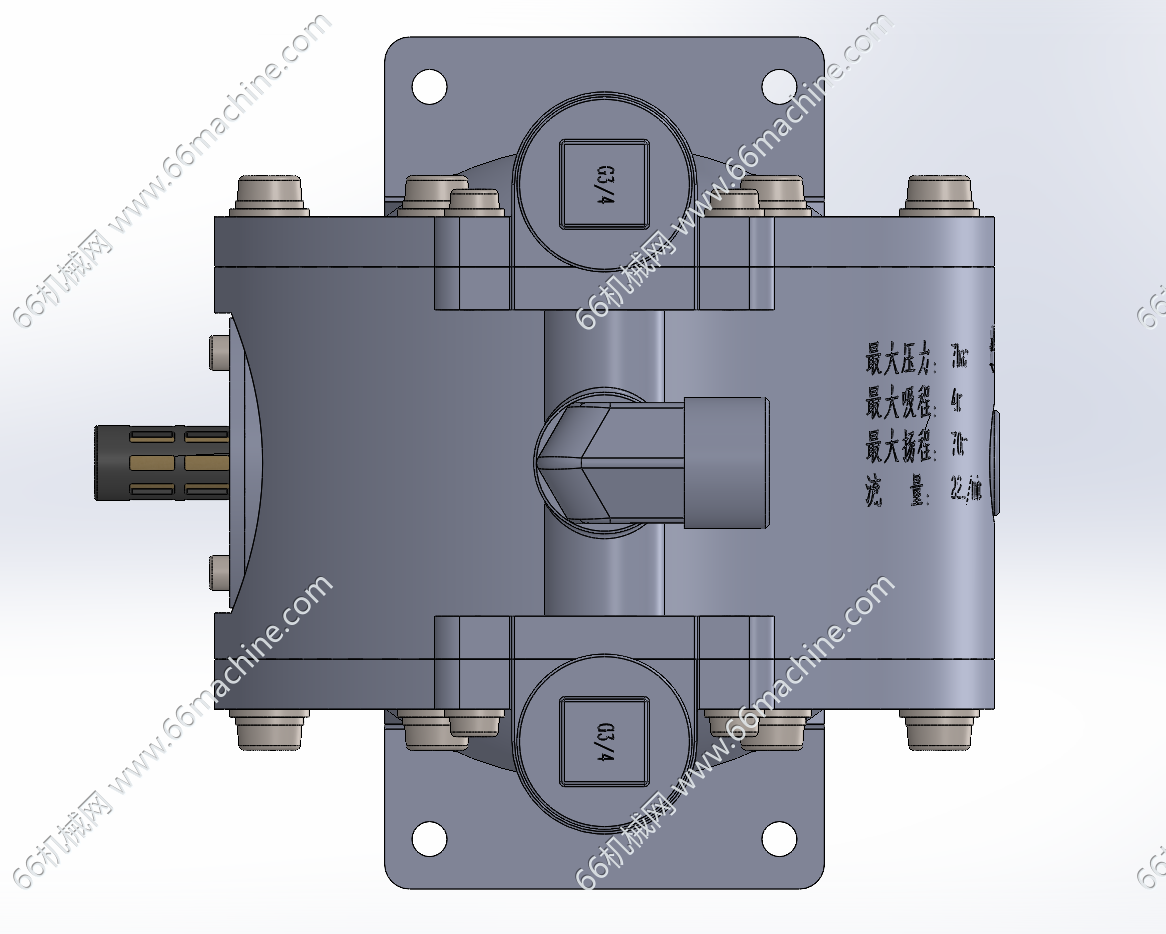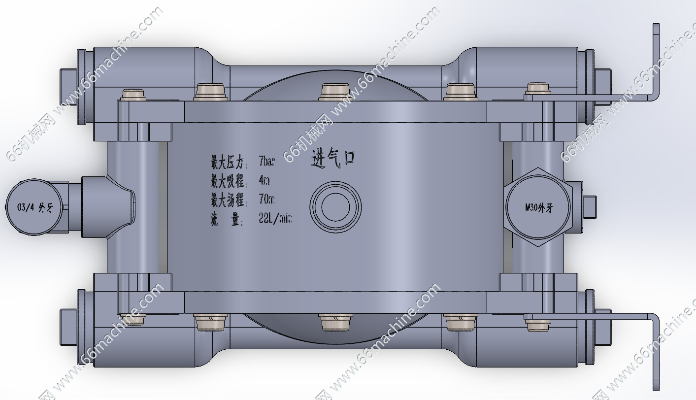 本模型为气动隔膜泵,是一种利用压缩空气作为动力源的泵,其工作原理主要基于隔膜的往复运动来实现流体的输送,具有自吸能力强、可空转、流量可调节、介质适应性广和无泄漏等特点,广泛应用于化工、制药、食品、环保等领域。
