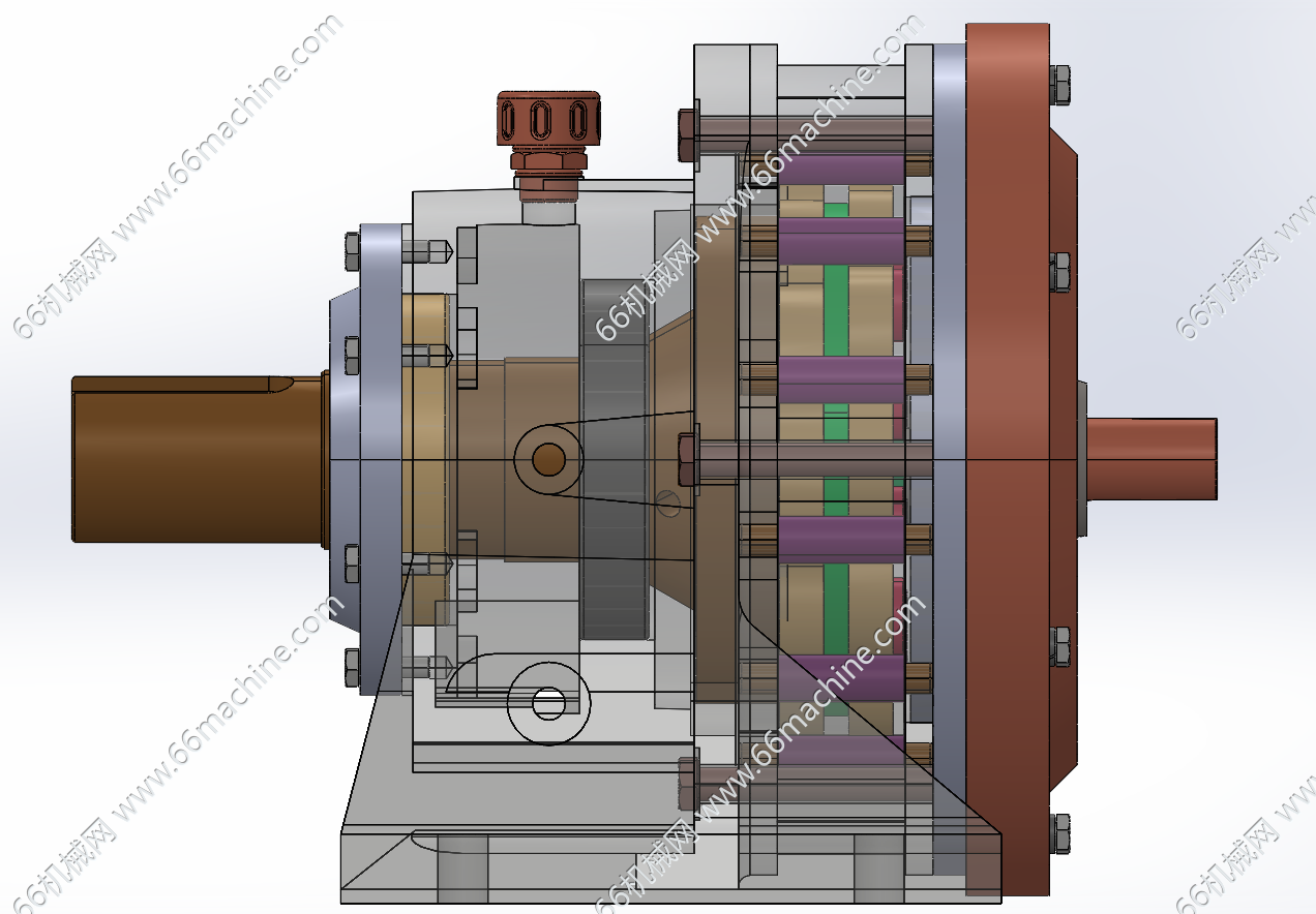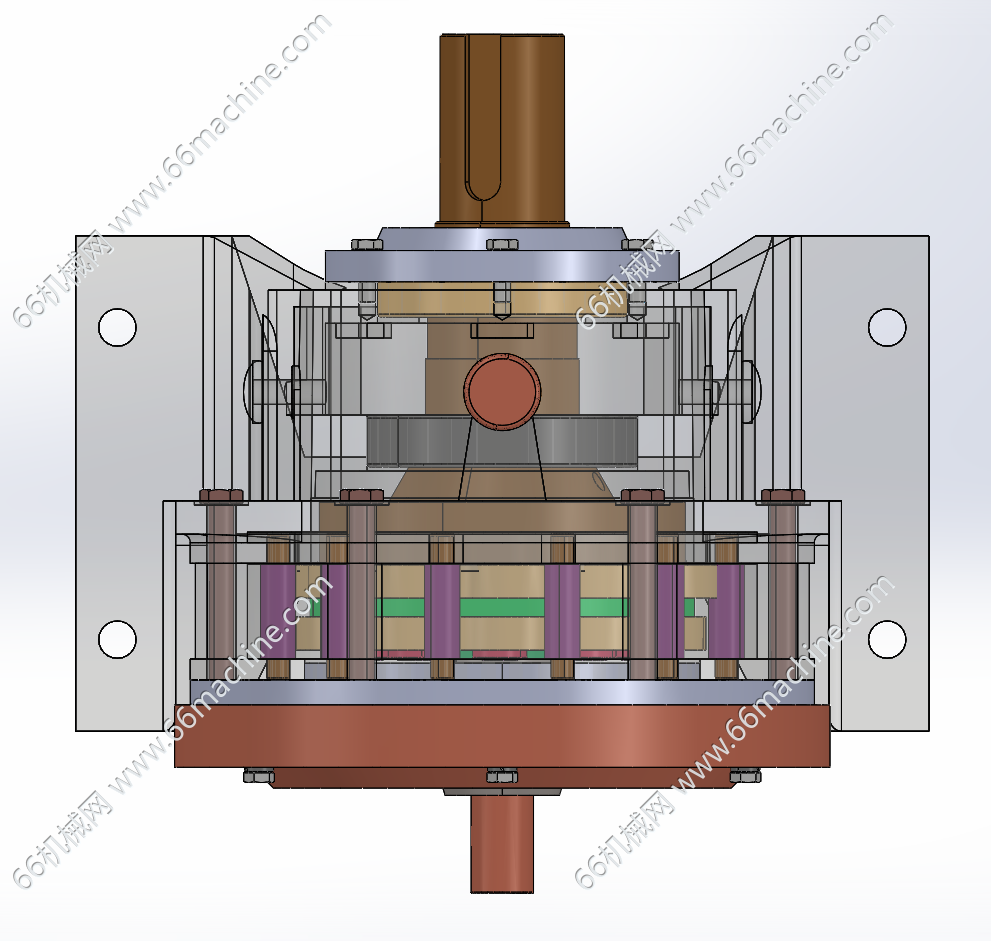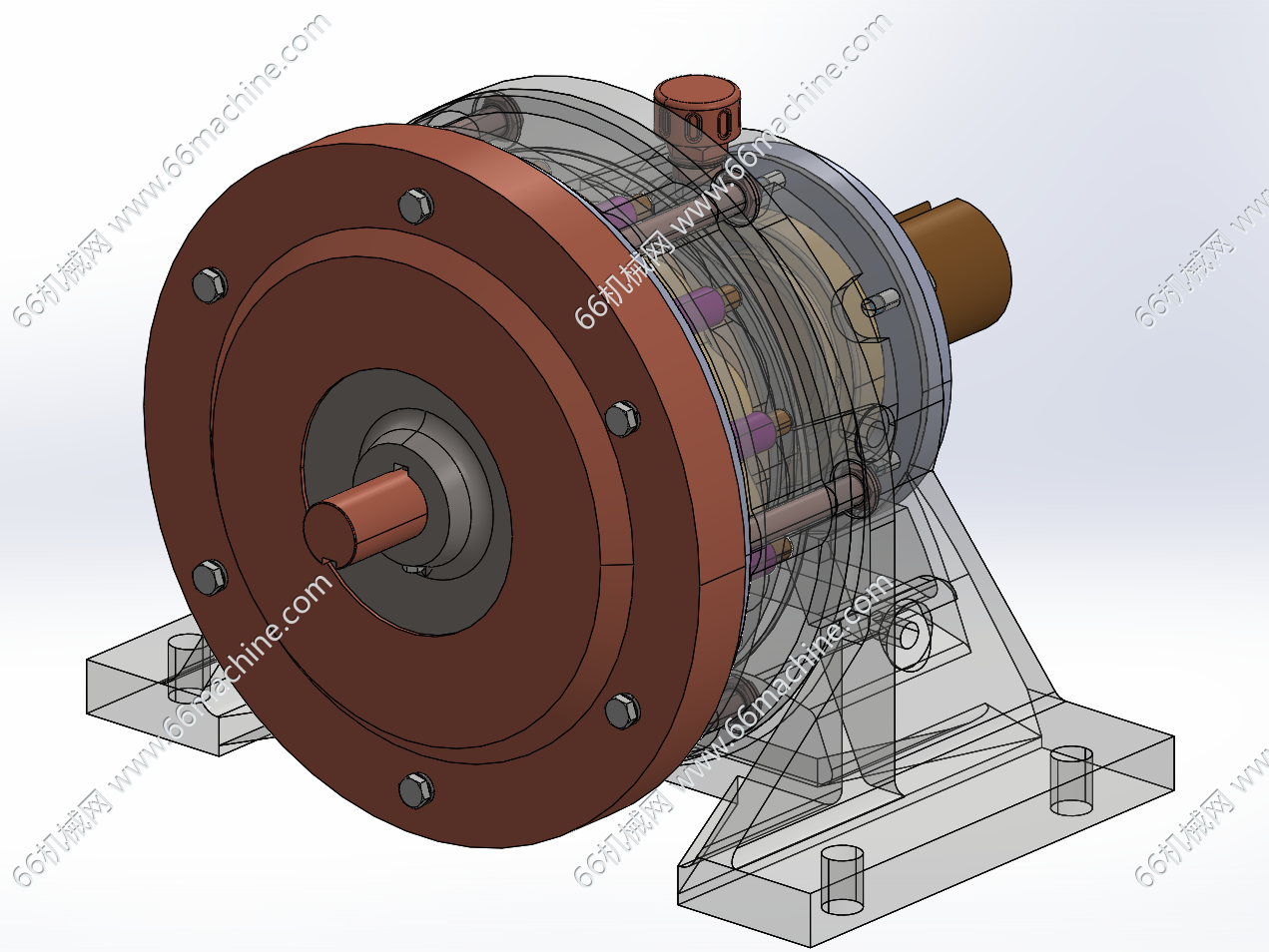 摆线针轮减速器是一种采用K-H-V少齿差一式传动原理及摆线针齿啮合的新颖传动机械。它的工作原理基于行星齿轮传动和少齿差传动,通过输入轴带动主动摆线轮转动,主动摆线轮通过齿合作用带动从动摆线轮和针轮转动,实现减速的目的。其齿合部位采用特殊的曲线设计和滚动摩擦方式,保证了减速器的连续运转、高传动效率和低功率损失。摆线针轮减速器的结构特征显著,它具有高减速比、高效率、结构紧凑、体积小、运动平稳噪声低、使用可靠寿命长、设计合理维修方便等优点。此外,其过载能力强、耐冲击、惯性力矩小,特别适用于启动频繁和正反转的场合。在纺织印染、轻工食品、冶金矿山、石油化工、起重运输及工程机械等领域中,摆线针轮减速器作为驱动和减速装置被广泛应用。它的型号参数丰富,包括额定输入转速、额定输出转速、额定输出扭矩、齿轮传动比、效率、外形尺寸、重量以及使用环境要求等,以满足不同使用需求。