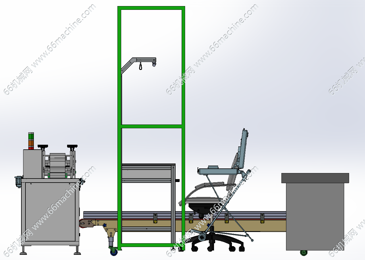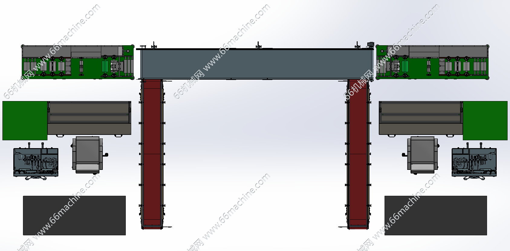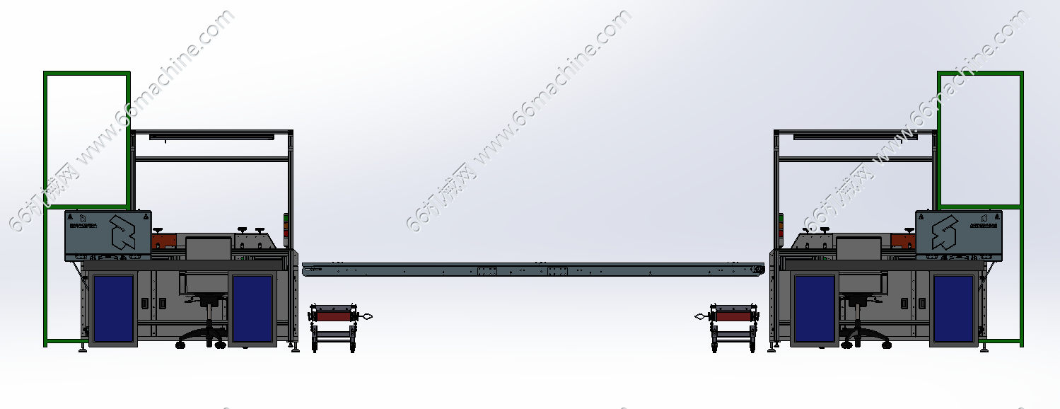 本模型为双工位布料检查线,采用左右对称的双工位设计,每个工位配备布料检测设备,中间由输送线连接,实现布料在两个工位间的流转与多维度检测。布料从两侧进入各自工位后,依次完成外观检测(识别布料瑕疵、色差)、性能检测(如抗拉强度、透气性测试),经输送线流转后,完成对布料质量的全面把控,筛选出合格与不合格产品。
