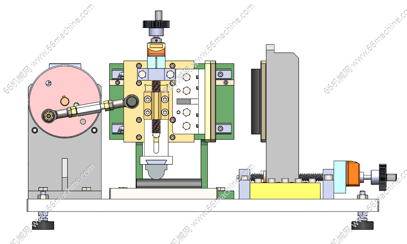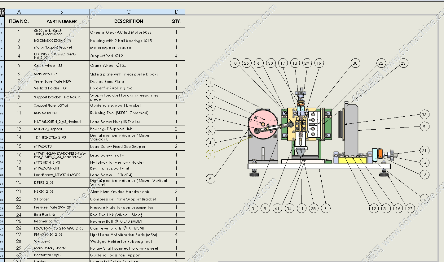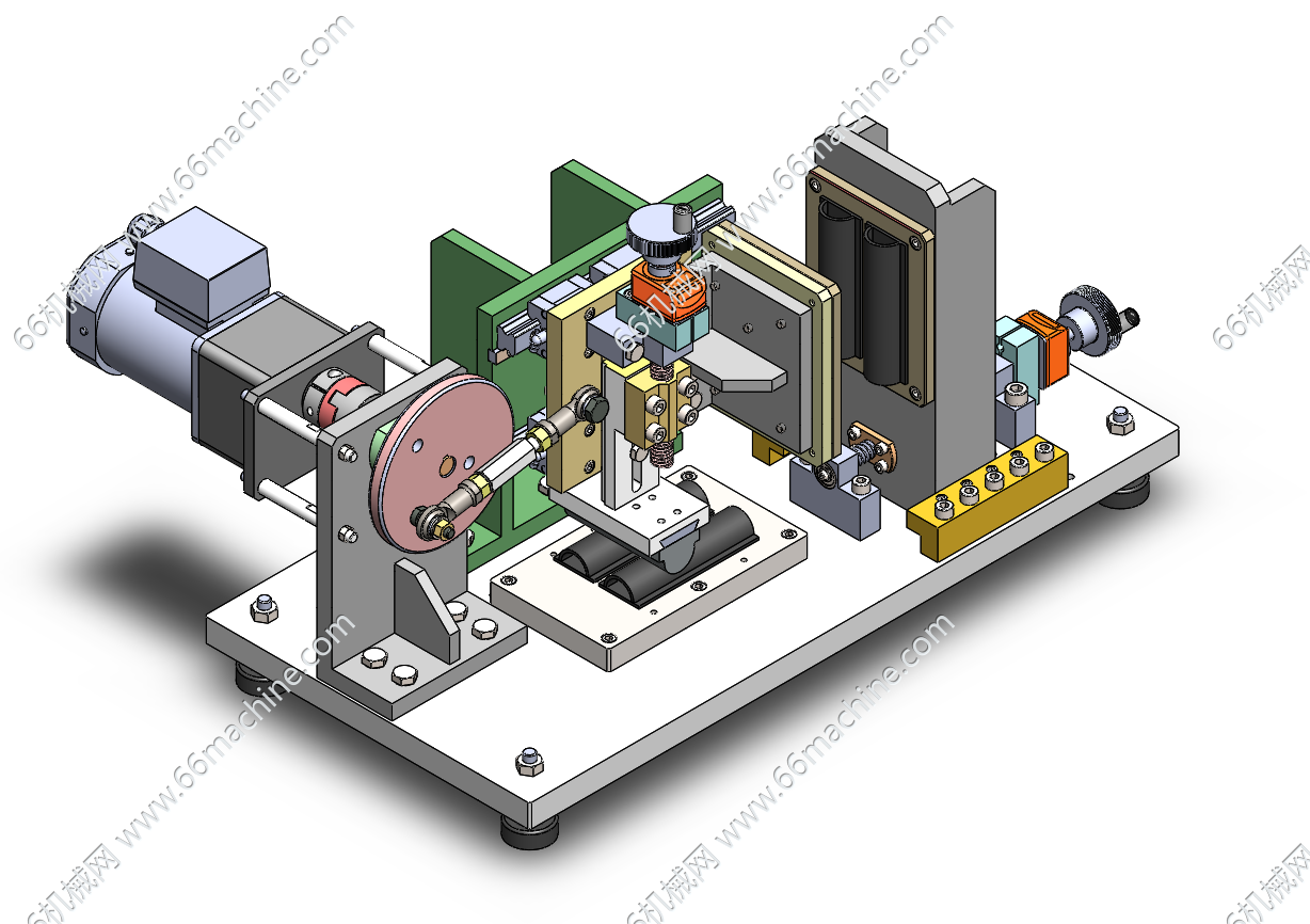 本模型为压缩摩擦试验机,通过电机带动圆盘上的连杆运动进而实现相应构件水平摩擦及压缩。主要用于对橡胶等软材料进行压缩和摩擦试验,以验证材料的耐磨性。本模型包含所有零部件,建模精巧,绝对精品,可供大家探讨学习!