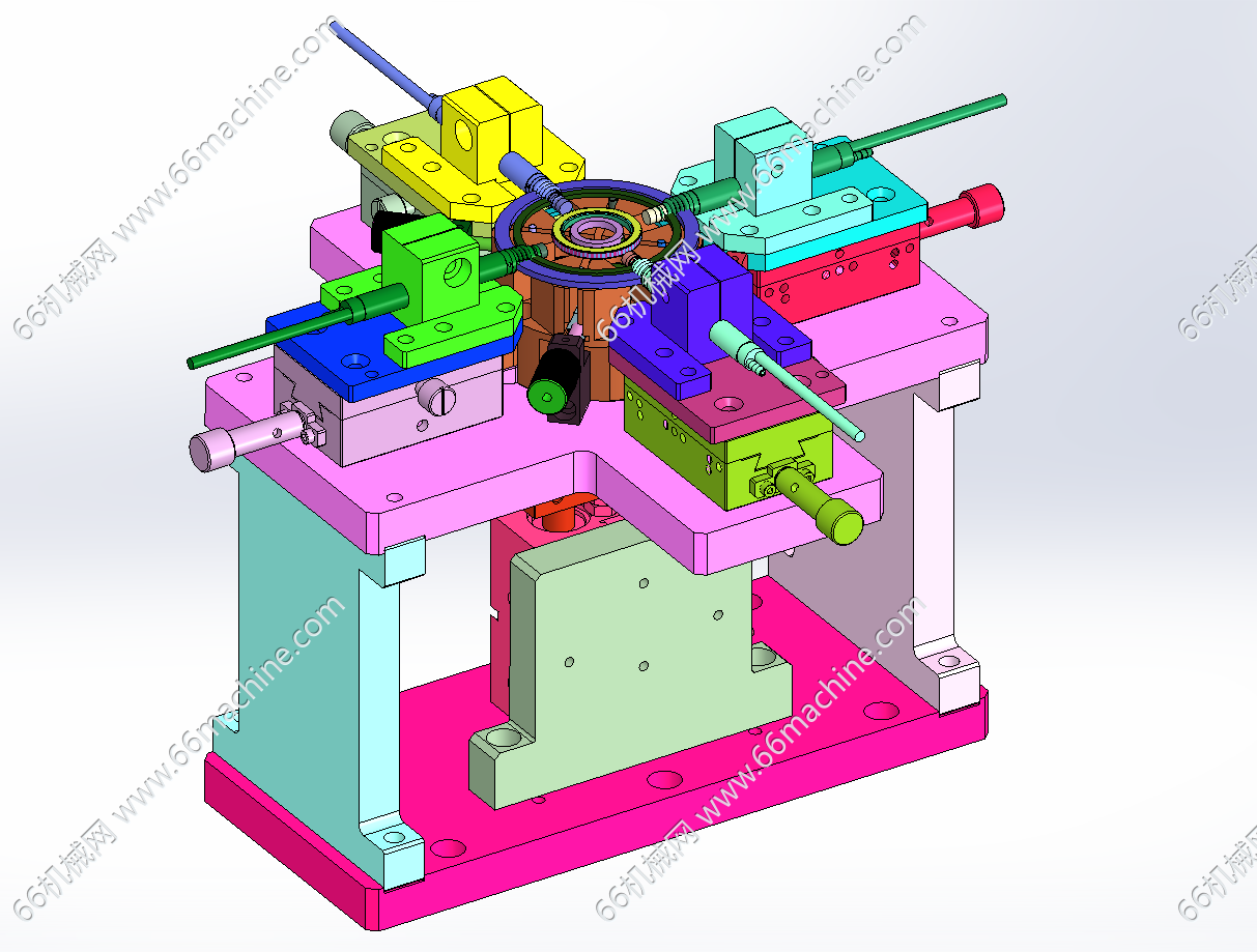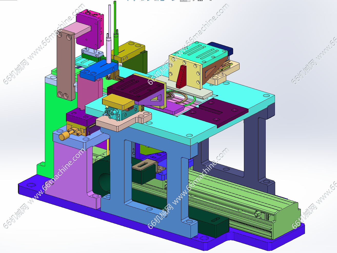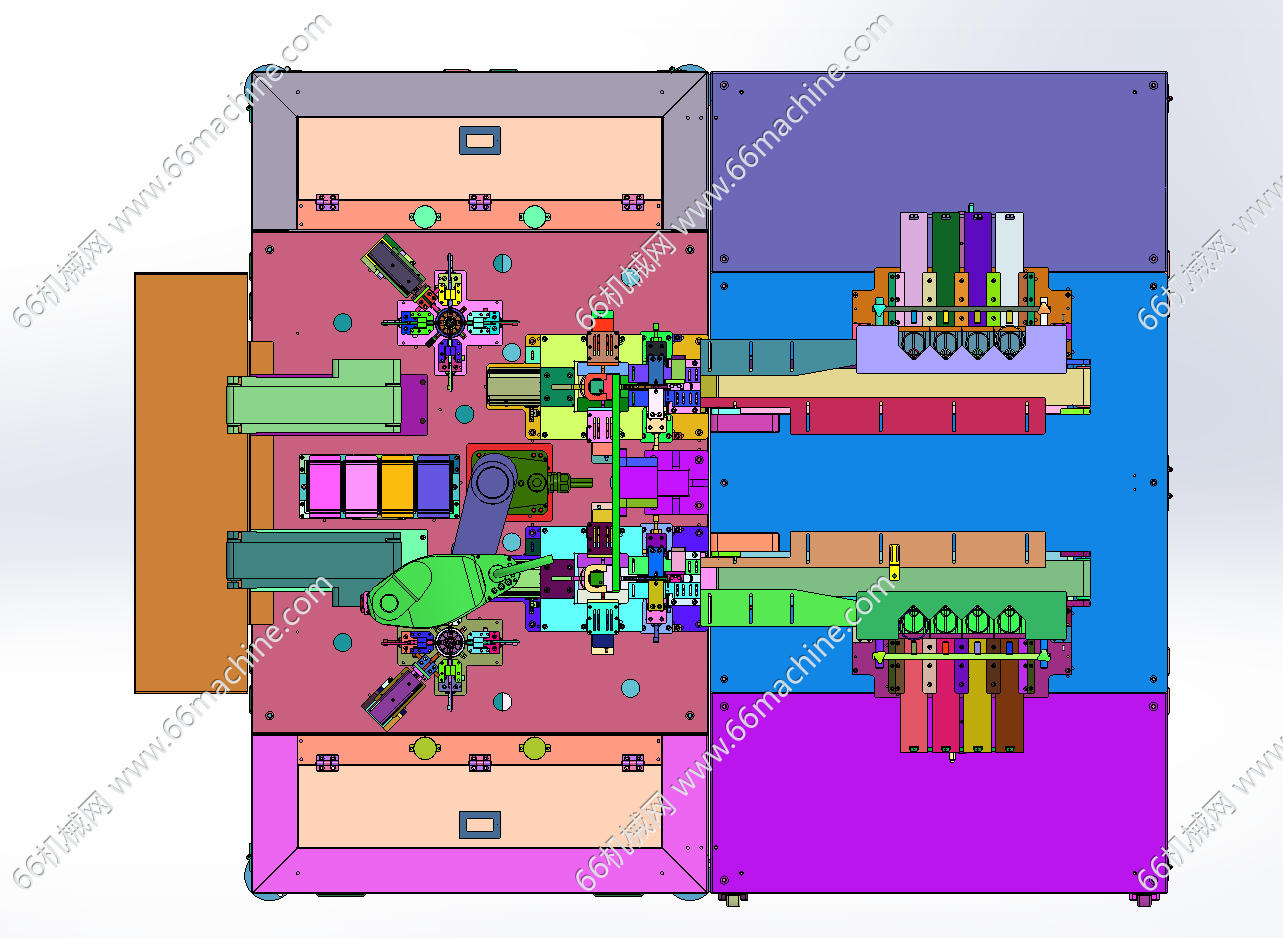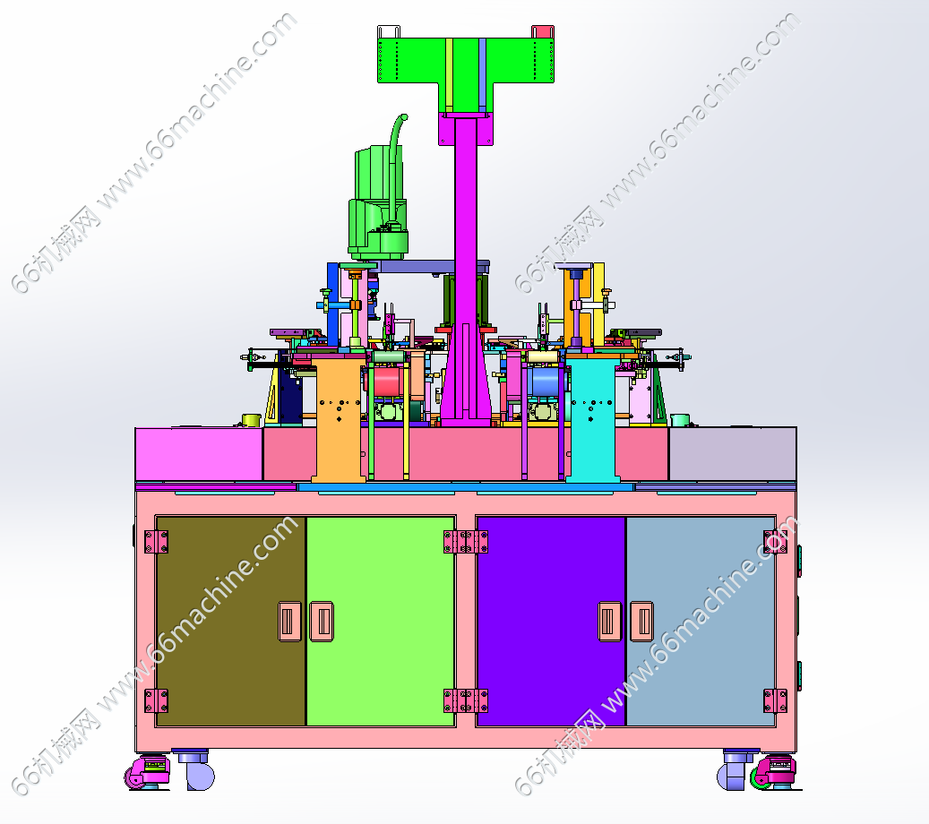 本设备为某企业圆环直径、高度及视觉检测机,主要由四轴机器人、圆环测直径模组、圆环测高模组、弹夹式上料机、CCD检测模组等组成。人工将圆环放置到弹夹上料仓中,推板上料至皮带线,定位工位对圆环完成定位,四轴机器人完成圆环的抓取至检测工位,通过接触力位移传感器完成直径、高度检测,视觉完成外观检测,检测完成,四轴机器人完成圆环的抓取,并搬运至下料输送线。