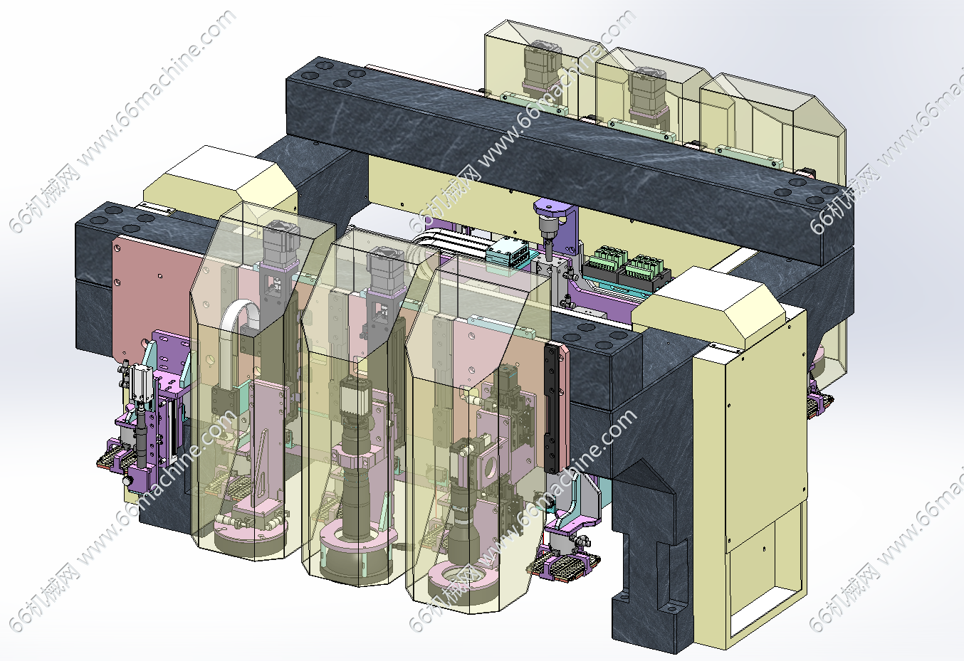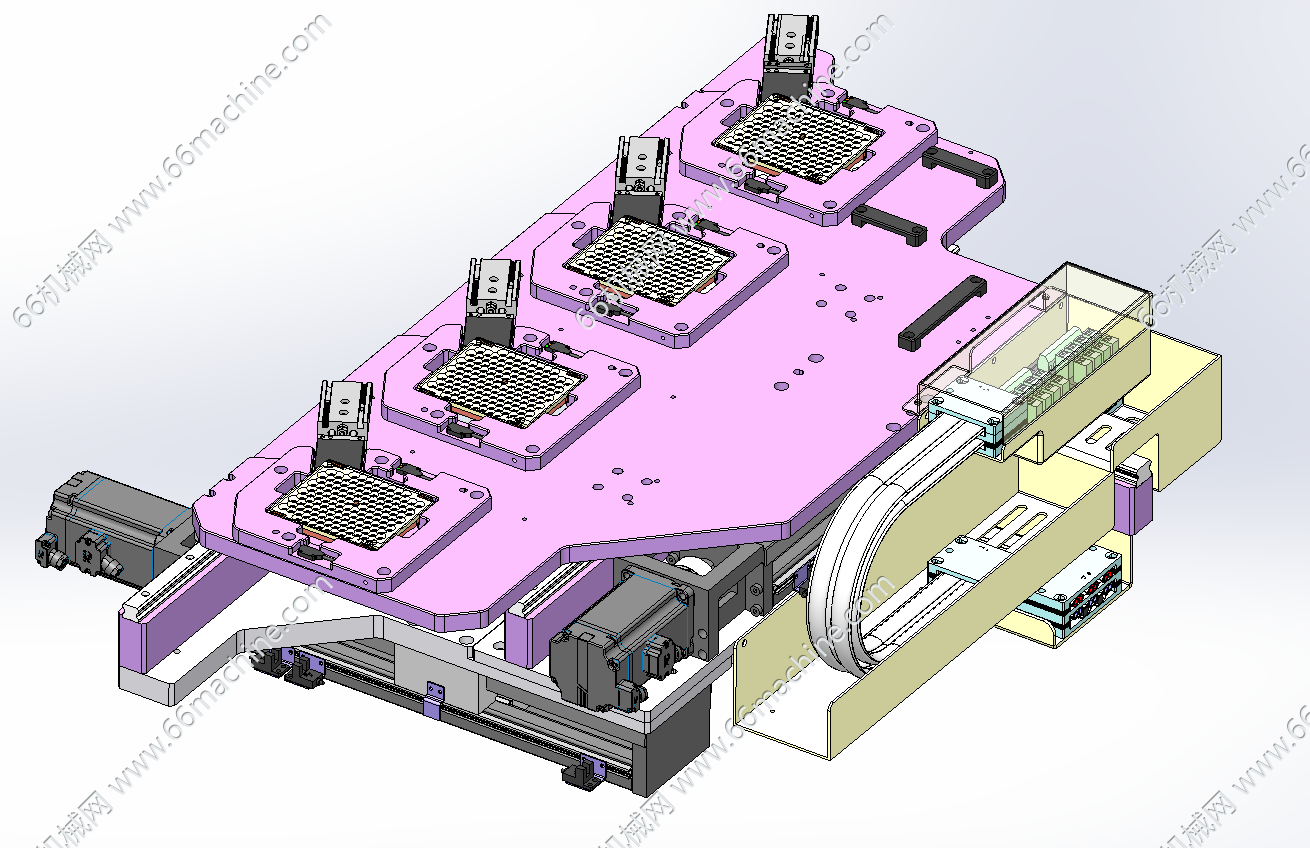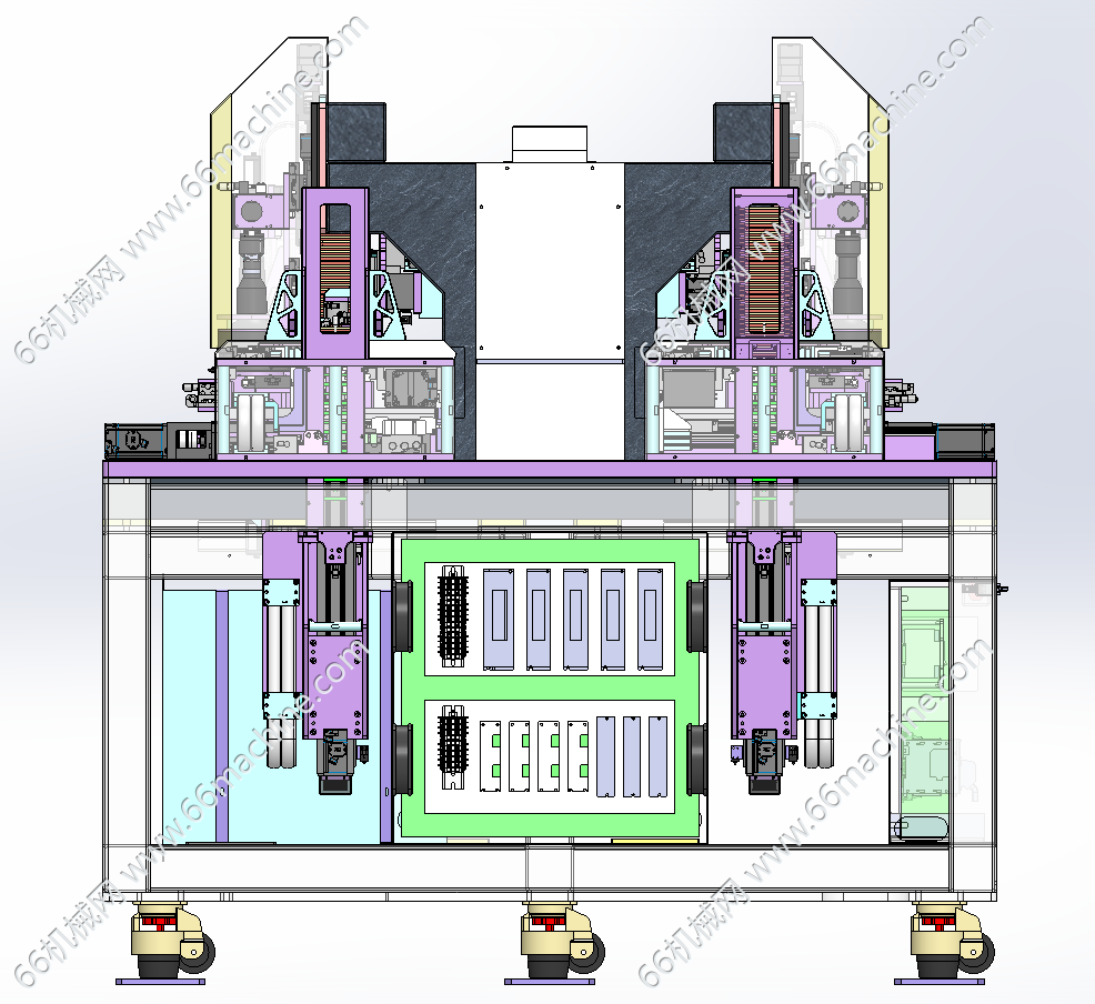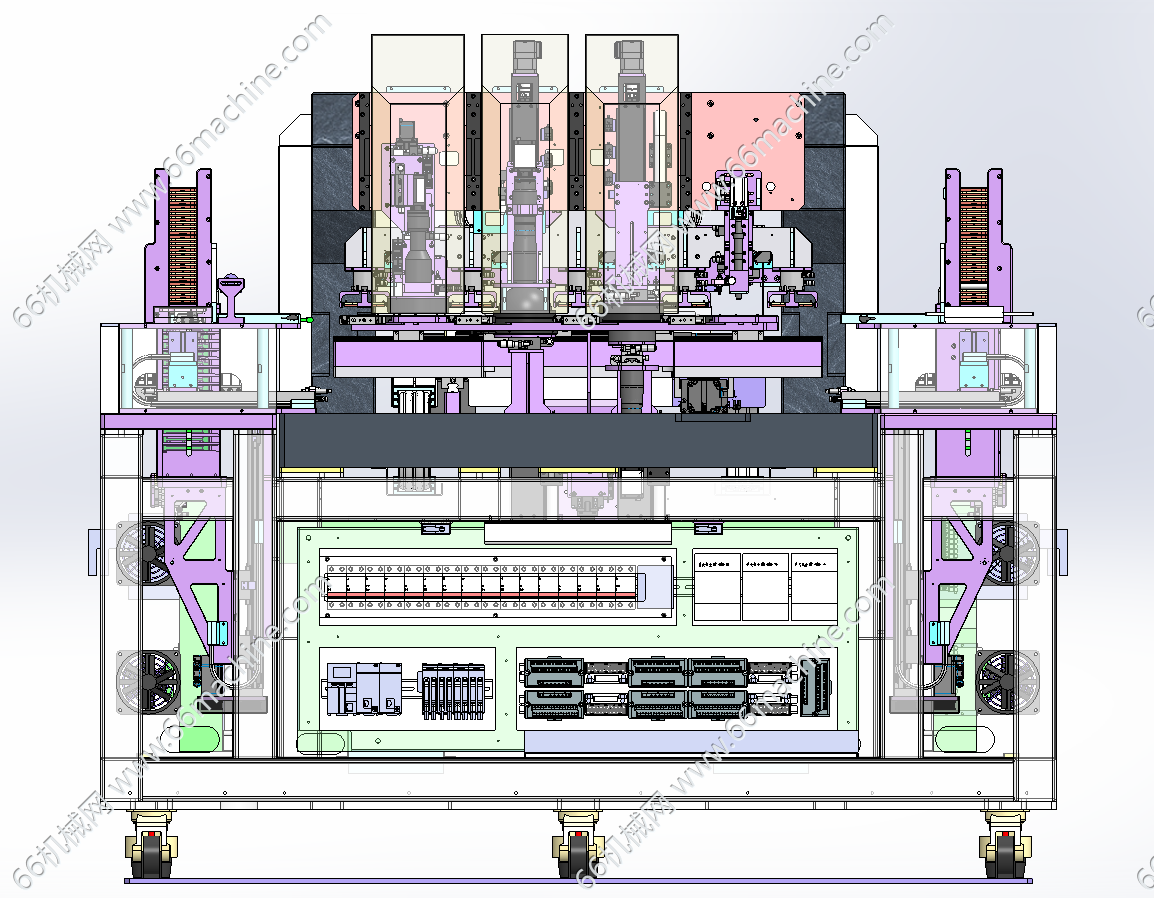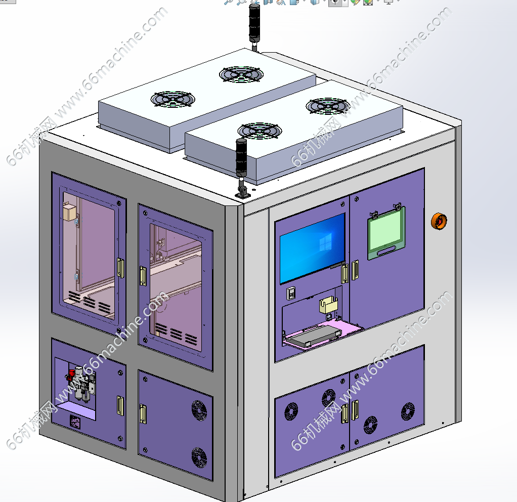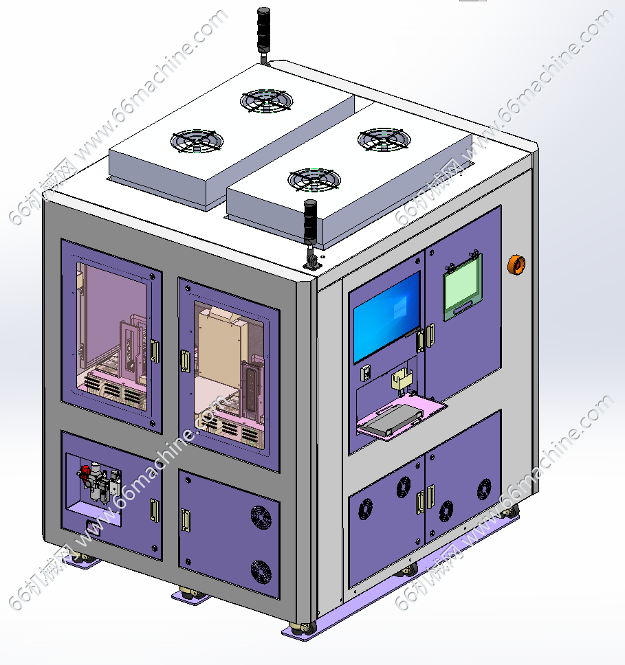 本模型为镀膜板视觉外观检查机,主要由下机架、机罩、视觉相机模组、镀膜板料架、镀膜板四工位载具等组成,主要用于镀膜板的外观检查,可同时对8pcs镀膜板进行检查,欢迎下载参考!