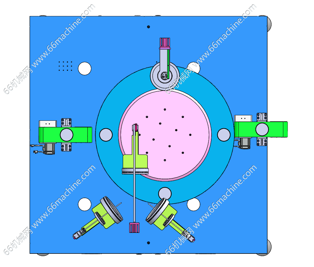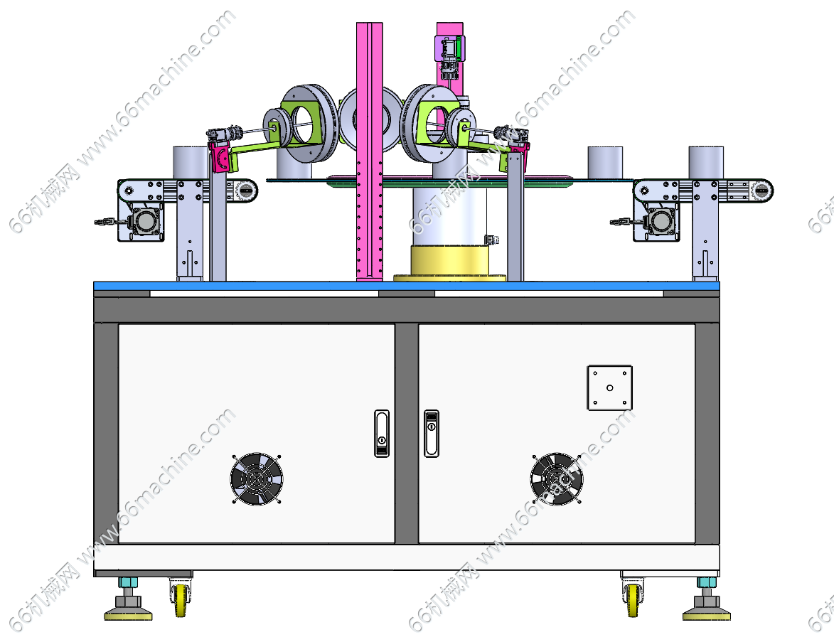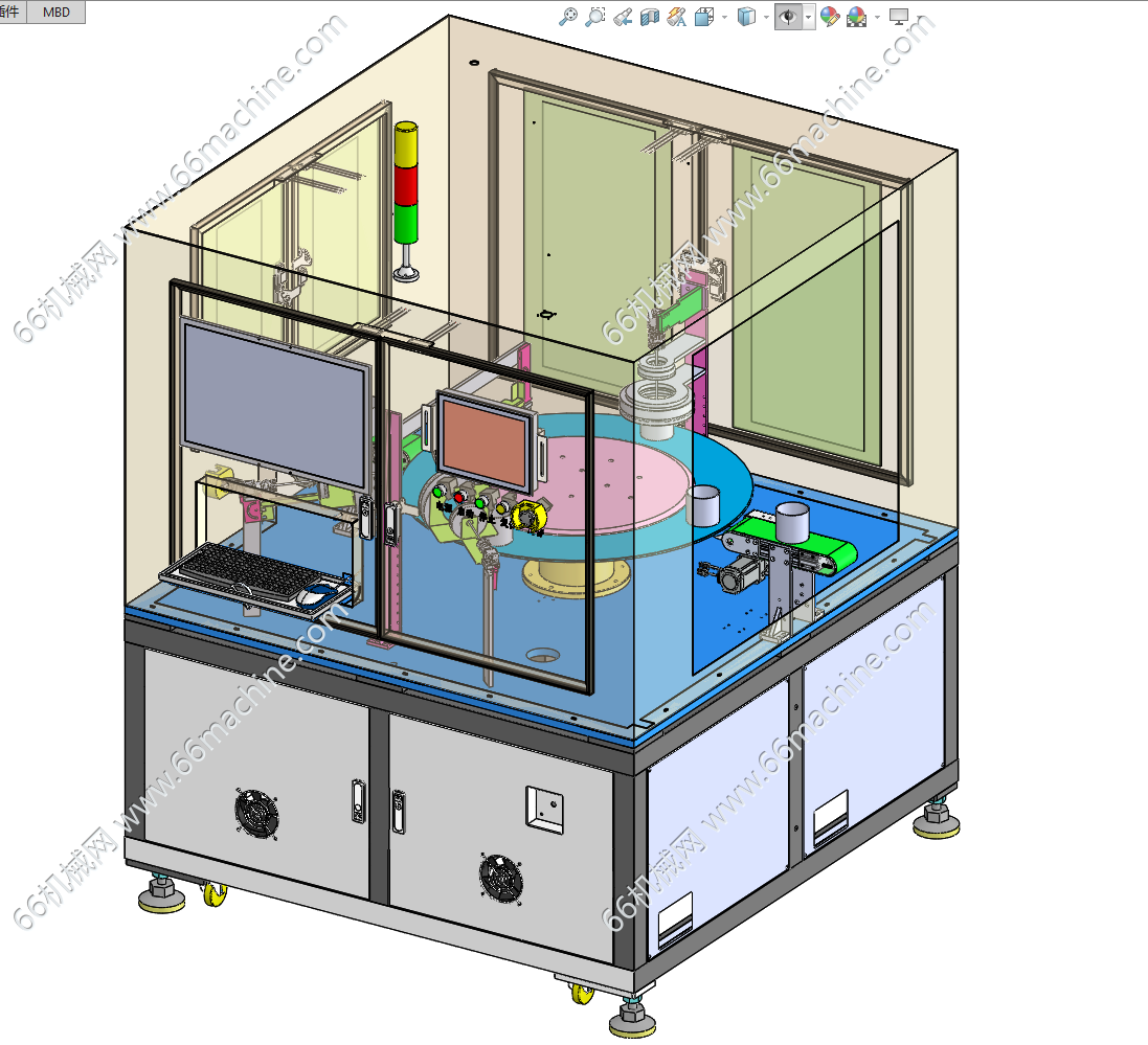 本模型为通用型视觉缺陷检测机(检查机),通过DD马达带动转盘,产品通过皮带线输送到转盘上。由多组视觉模组对产品多方位进行视觉检测缺陷,欢迎参考!