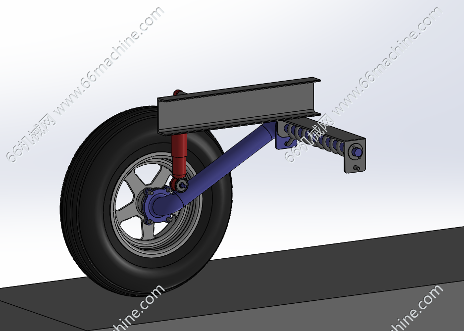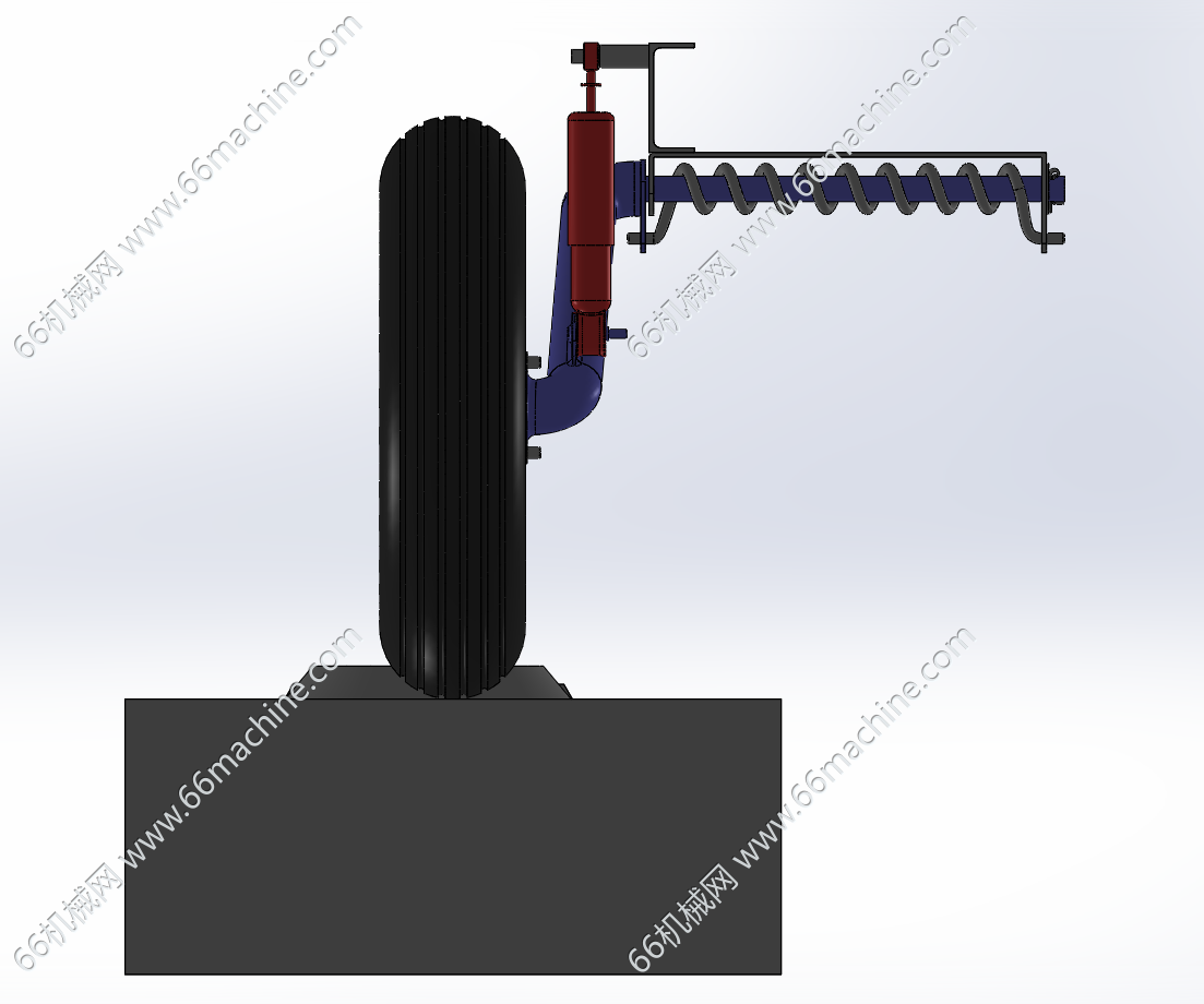 仿真模拟汽车一边轮胎路过凹凸不平的路面时,减震弹簧的减震效果,包含6个运动体,2个滑动副,5个旋转副,2个弹簧连接器,一个阻尼,一个3D接触。