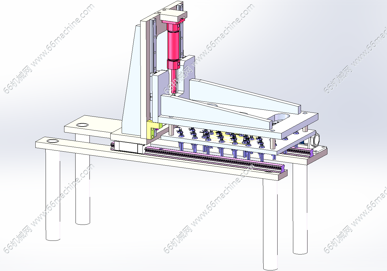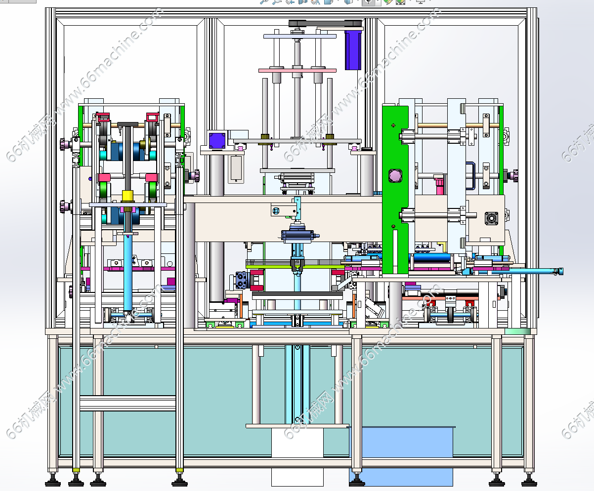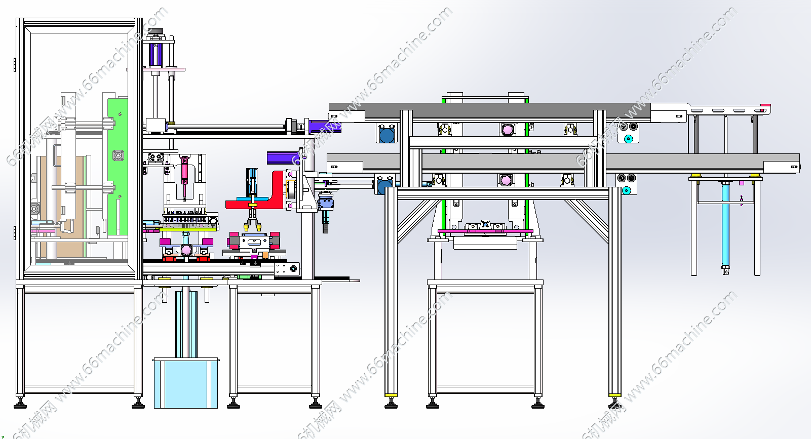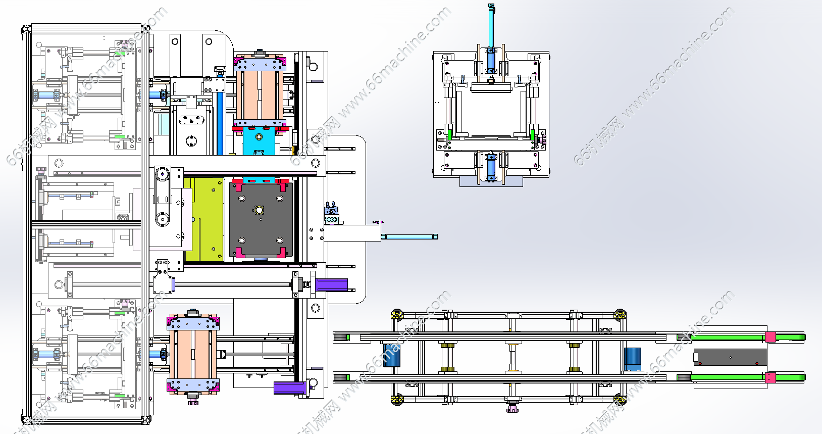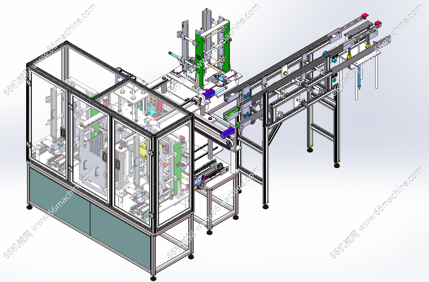 本模型为锂电三合一扣板上料检测机,主要由胶壳自动缓存供料机、PCB板自动供料机、PCB板丝杆吸盘传动装置、PCB板自动检测机、PCB板不良品自动回收机、胶壳传送皮带机、抓取传送装置、翻转移栽机械手等组成,欢迎参考!