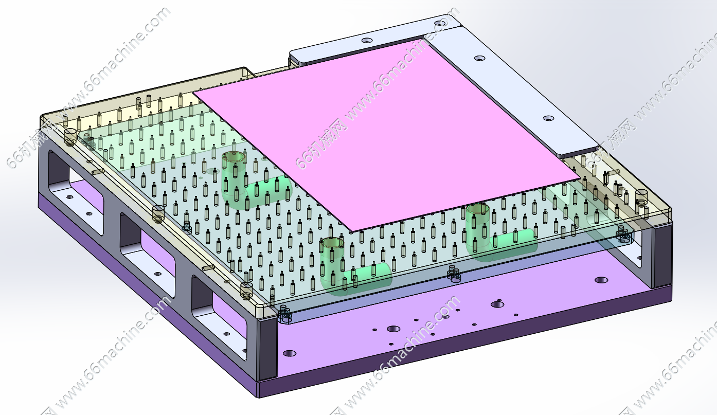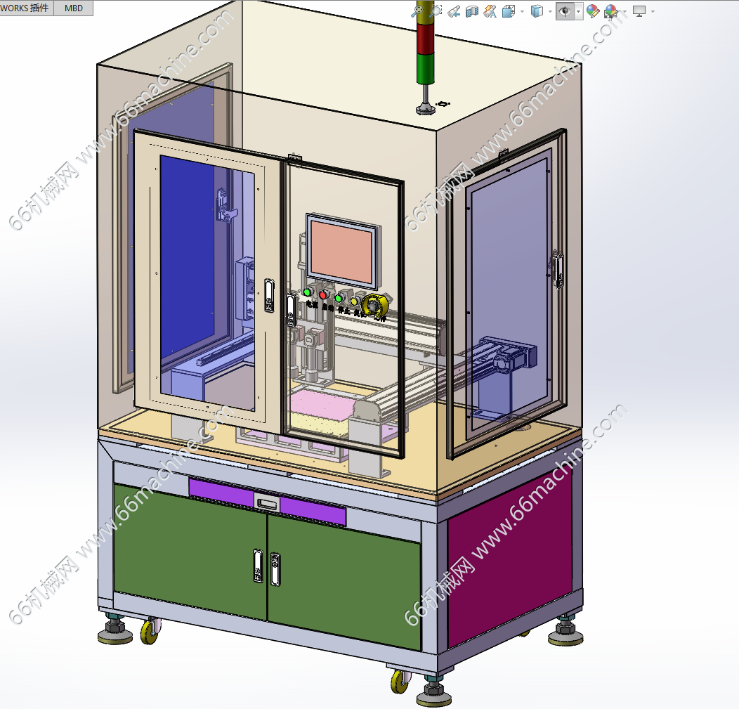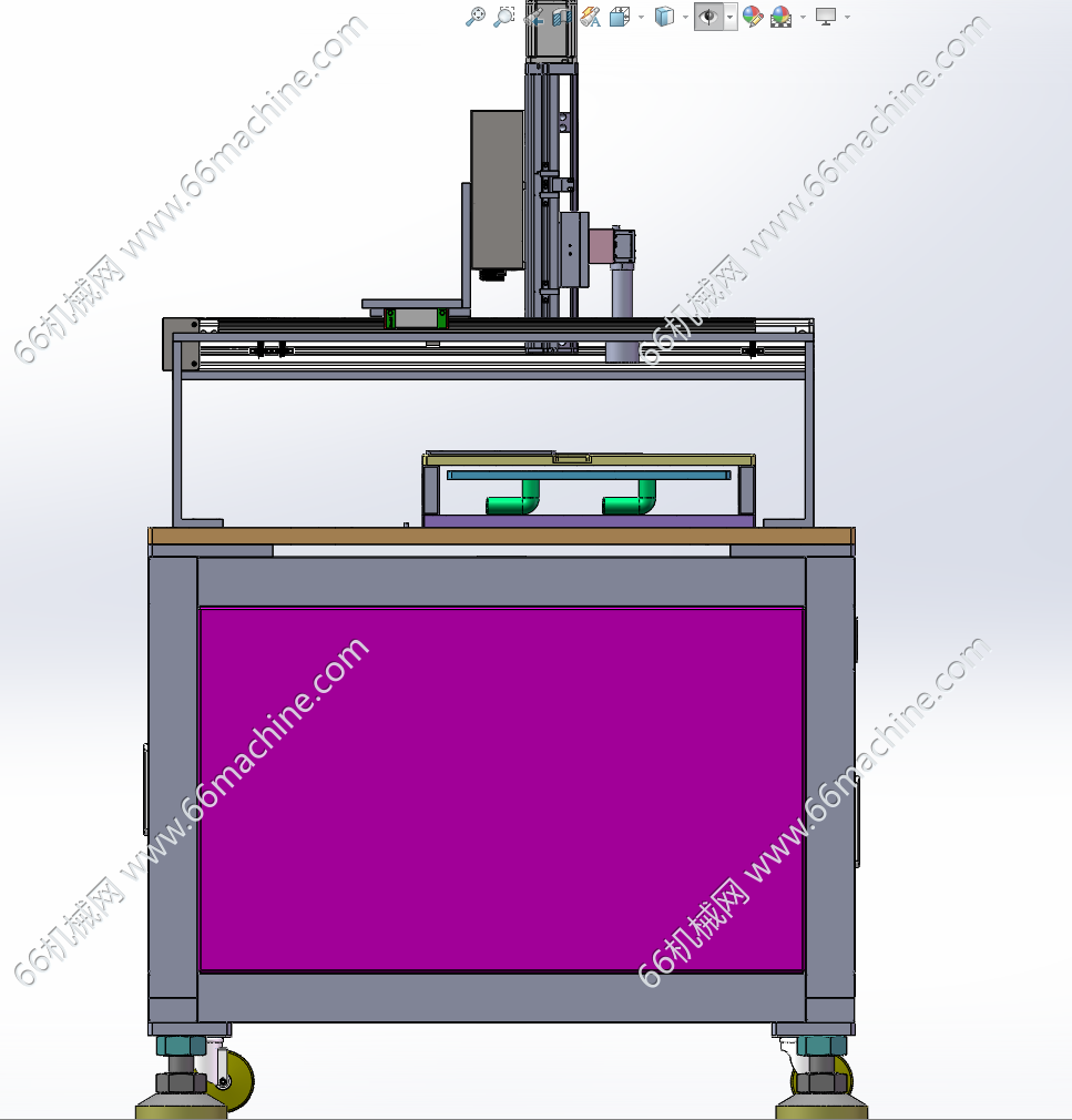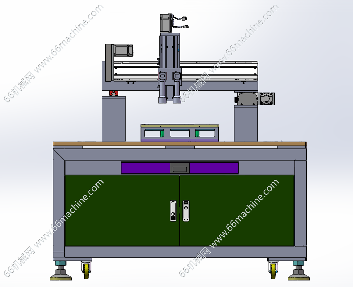 本模型为面板、FPC软板吸附式视觉检测机(检查机),人工把FPC软板/面板放置在吸附台上,通过真空吸附把FPC/面板吸附平整,然后视觉检测机构在XY轴的左右下扫射FPC软板/面板,FPC软板/面板里面很多孔位,线路,电器件等多个需要检测的位置,都要通过交叉模组移动完成检测,欢迎参考!