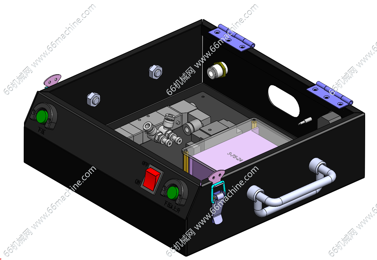 本模型为PCBA针床功能测试治具(FCT测试架),以气缸为动力带动上压板垂直下压,浮动载板上排布着对应PCB测试点的弹簧探针,配合定位销、仿形槽实现PCBA的精准定位与避空保护,广泛应用于消费电子、汽车电子等领域的PCBA的功能测试。