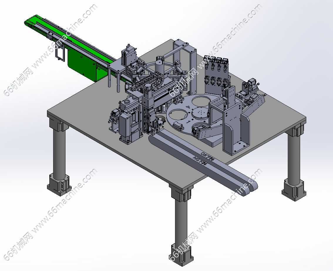 双转盘串联视觉检测机构是将待检产品在两个同步或异步旋转的转盘之间进行传递与流转,并在这两个转盘的不同工位上,部署多组视觉系统,完成分步、分工序的协同检测。