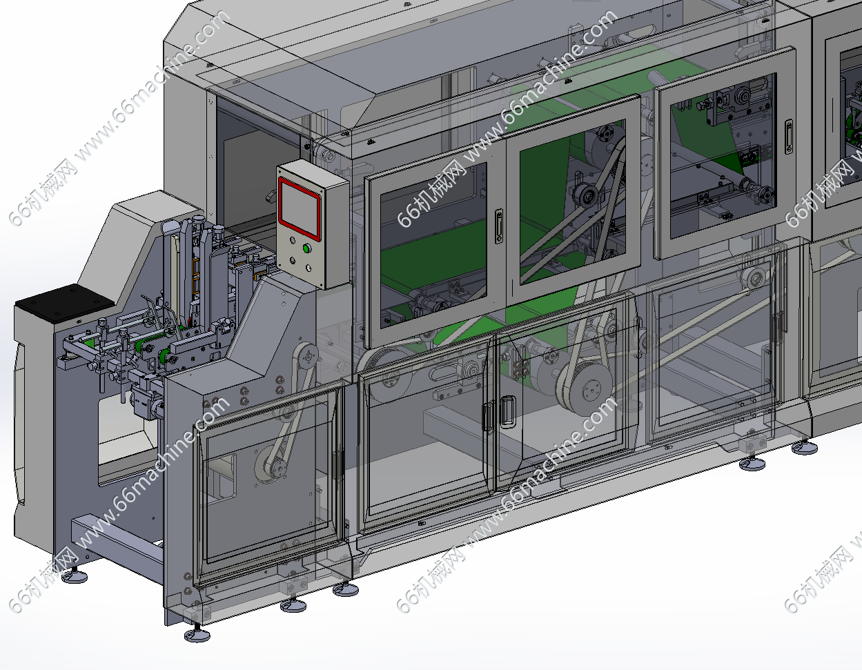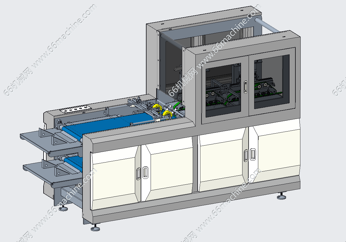 本设备为某企业服装吊牌检品机,是一种集机器视觉(OCR)、自动控制、人工智能(AI) 和数据管理于一体的高度自动化智能设备系统。它主要用于替代传统的人工肉眼检查,自动完成对服装吊牌上各类信息的核对、验证与品控,是现代服装制造业、仓储物流和电商零售中提升质量与效率的关键装备。该设备将繁琐、易错、低效的人工检品流程,转变为高速、精准、可追溯的自动化数据流水线。本模型为ProE5版本,另含x-t通用格式,仅供大家参考!【设有优点如下: a)、发卡调节方便简单、指向性好。 b)、纠偏部套对发卡歪斜的纸张及时纠正位置,保证了检测的需要。 c)、吸风部套调节简单,防止皮带跑偏的托辊结构可以很好的保证皮带跑偏现象。 d)、成品收纸方式采用鱼鳞式,计数采用气缸踢纸以拉开间距为参照计数。 e)、废品收纸方式采用鱼鳞式,废品自动排出,无须停机清废。 f)、 走纸输送采用单皮带夹送,走纸稳定,生产效率高。 g)、更换不同规格产品时,调整环节少,操作方便。 h)、显示监控的四个监控摄像头,可以更加直观的检测到各个部位纸张的输纸情况】