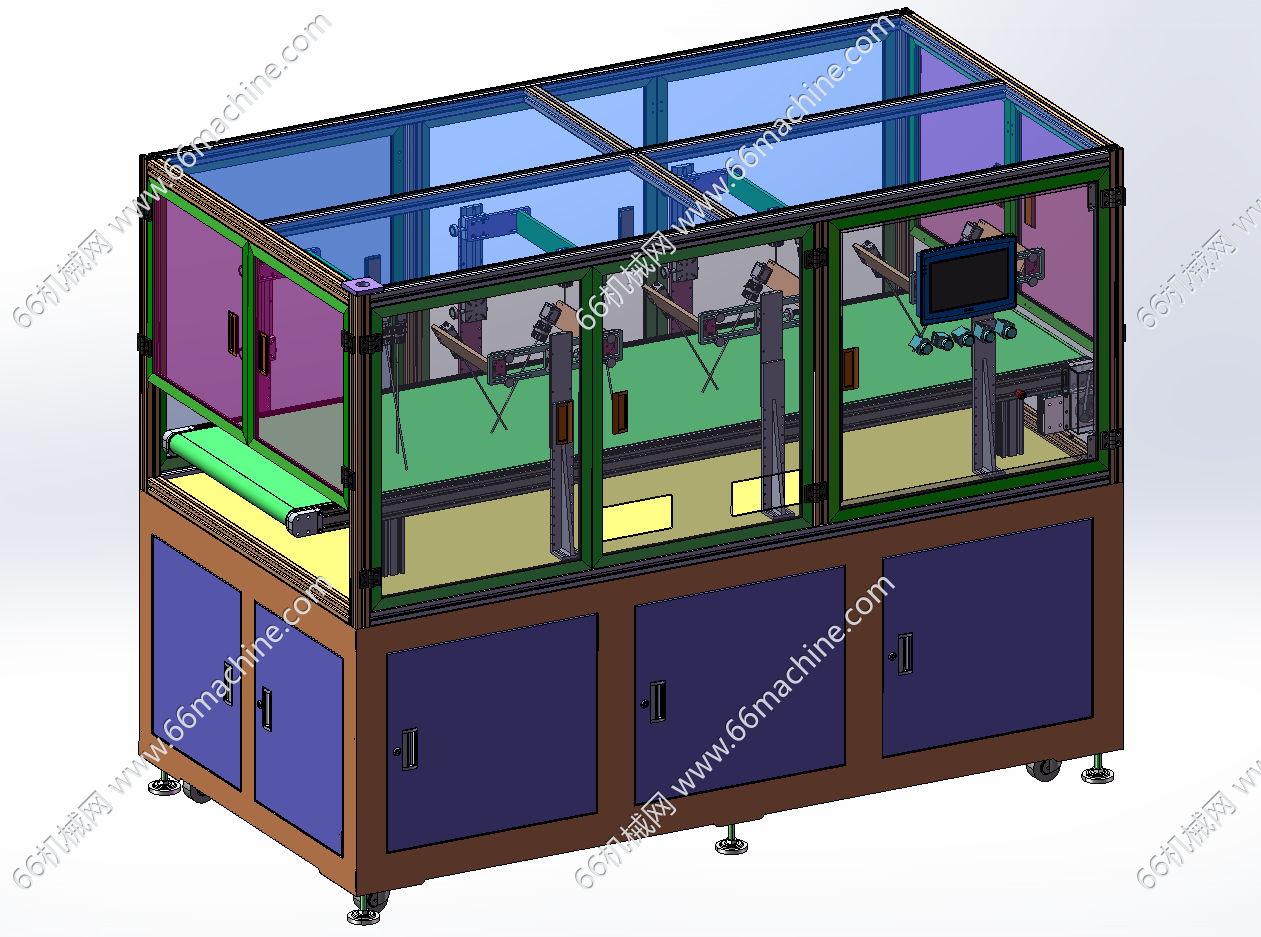 本模型为通用型在线式视觉检测机(检查机),皮带机两端长于设备本体,方便对接输入输出产品,由正拍CCD相机及斜拍CCD相机对产品进行全方位检查,适用于各种产品的检查,通用性强,欢迎参考!