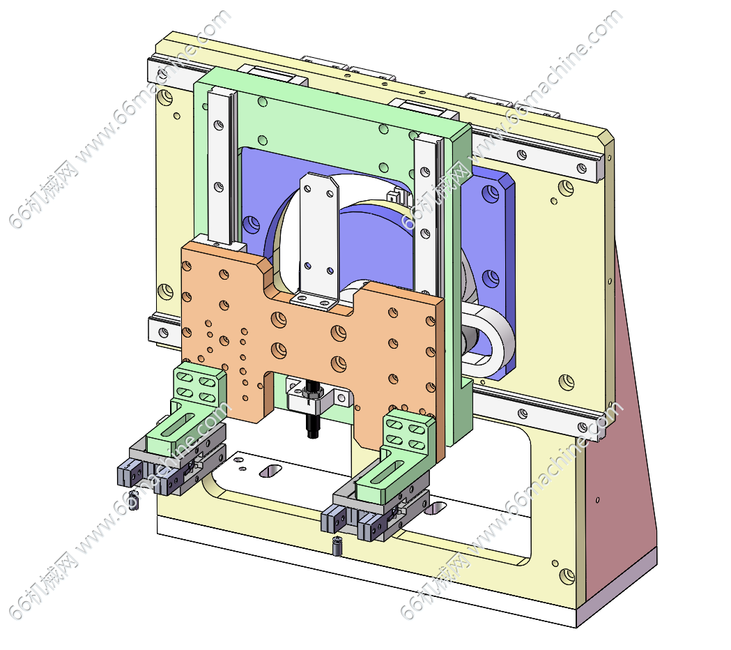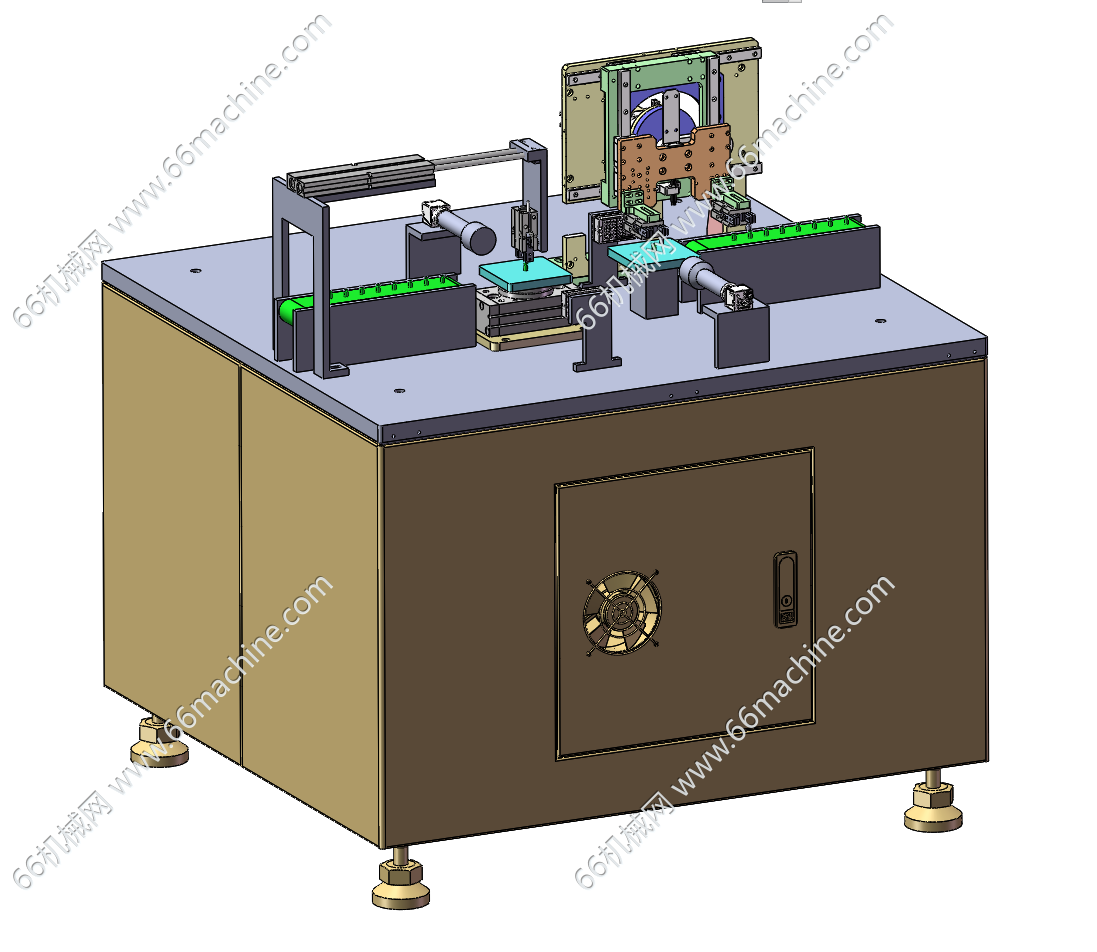 本模型为元器件自动上下料的在线视觉检测机(检查机),通过皮带线把元器件输送到搬运等待位,通过气缸伸缩搬运到检测位,检测是旋转工位,可以转动方向,这样检测的方向比较全面。检测完凸轮搬运到下料皮带机输,欢迎下载参考!