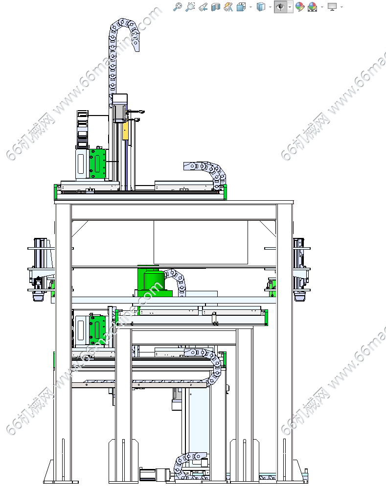 本模型为锂电池X射线及视觉检测机构,主要由三轴视觉检测模组、XZ轴射线检测模组及Y轴射线检测模组,各轴移动均采用伺服电机+丝杠模组实现,采用射线及视觉对锂电池进行复合检测,欢迎参考!