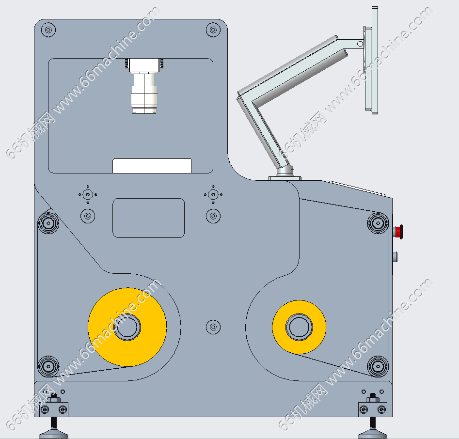 本模型为卷料视觉外观检查机,包含放卷架、收卷架、工业视觉相机、机架及控制系统,适用于各种材质卷料(如精品布料、铜箔、铝箔)的外观检查,欢迎参考!