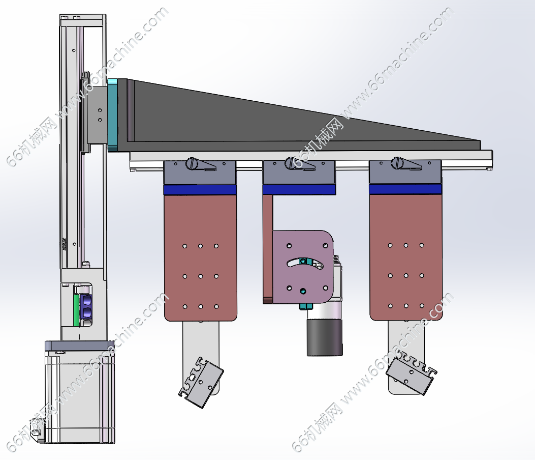 本模型为高度、角度可调式视觉相机,采用伺服电机驱动丝杆模组实现相机的高度调节,相机的水平位置和旋转角可以进行手动调节,同时2组LED灯光也可进行手动调节。该模组比较实用,广泛用于视觉检测设备中!