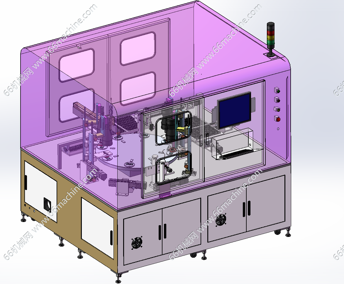 本设备为多工位转台CCD视觉检测机,是通过XY交叉轴自动供料,取料机械手把产品抓起到转台上,给转动上面的CCD相机检测,每个工位对应检测的缺陷不同。检测完后机械手搬运下料,到收料盘上分类收集。该设备通用性强,适用于多种小型零件的视觉检查,欢迎参考!