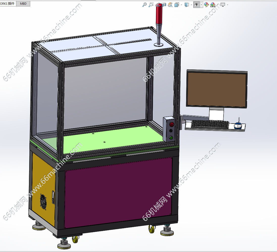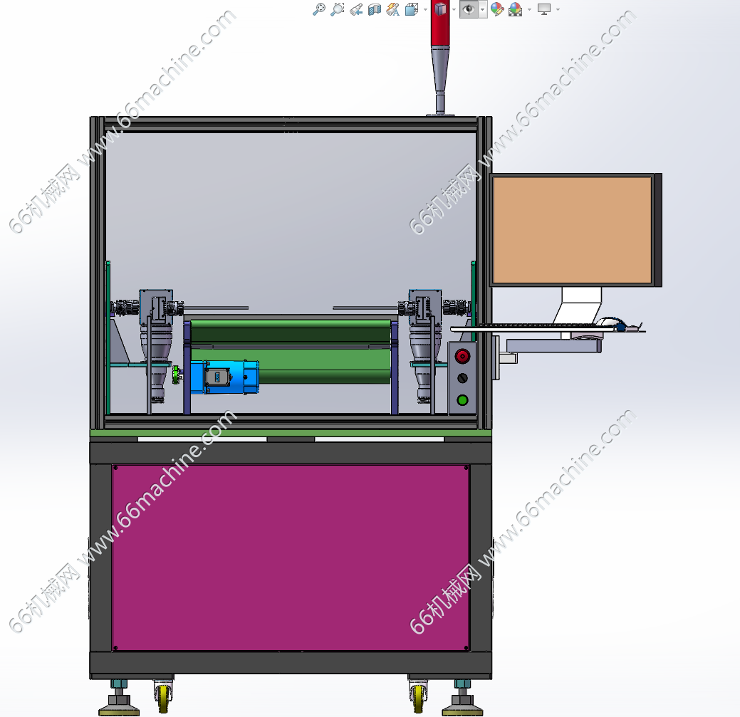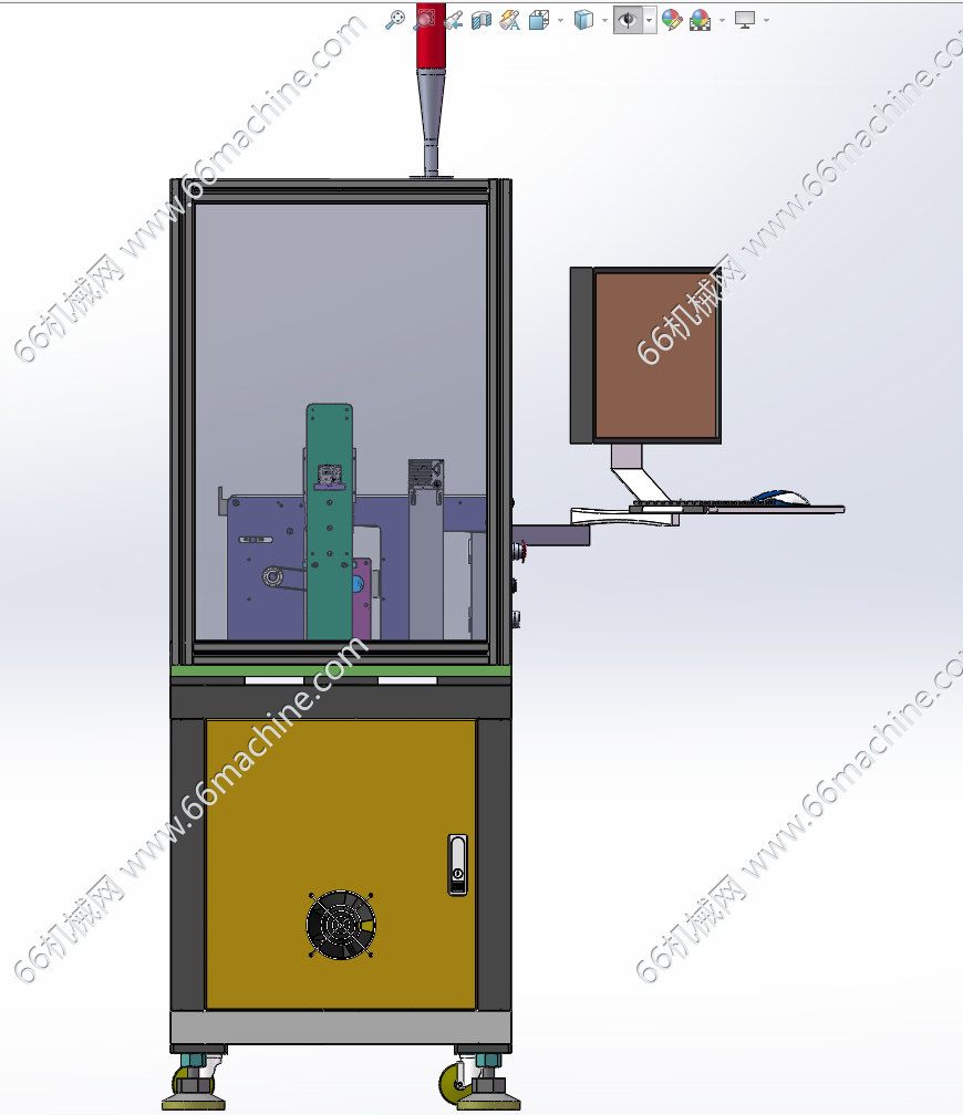 本模型为通用型在线式视觉检测机(检查机),人工把产品放到皮带流水线上,皮带机把产品运输到机器内部,在皮带机上边走边检测产品的外观面,如批锋、凹坑、缺口等问题。本设备通用性强,欢迎参考!