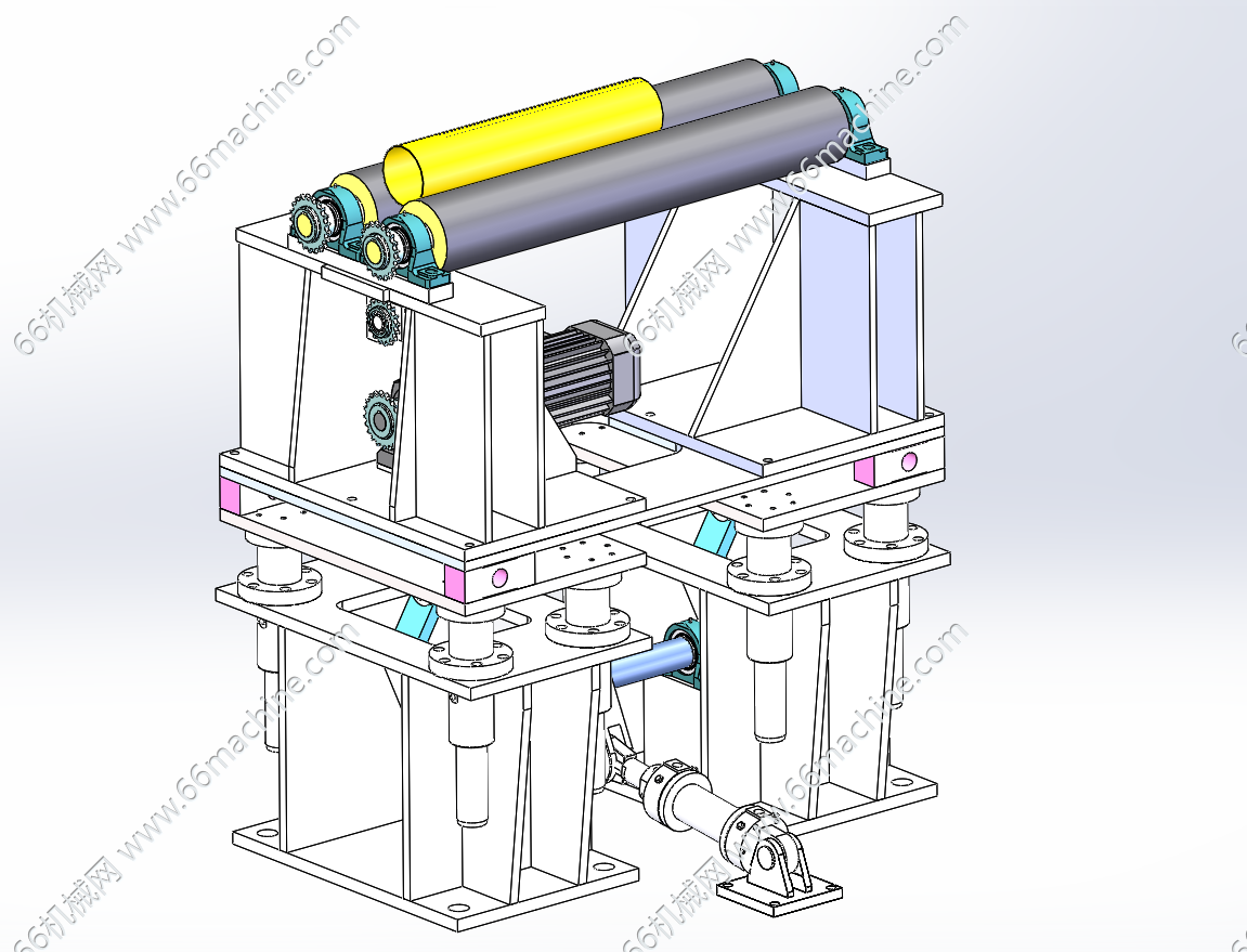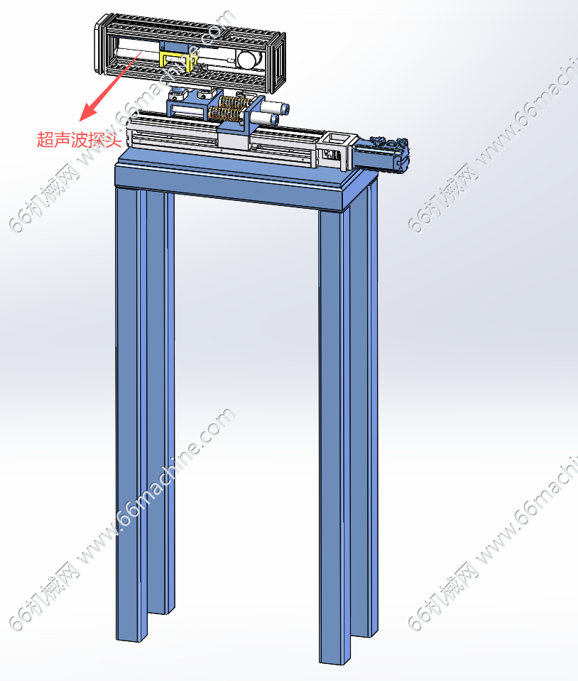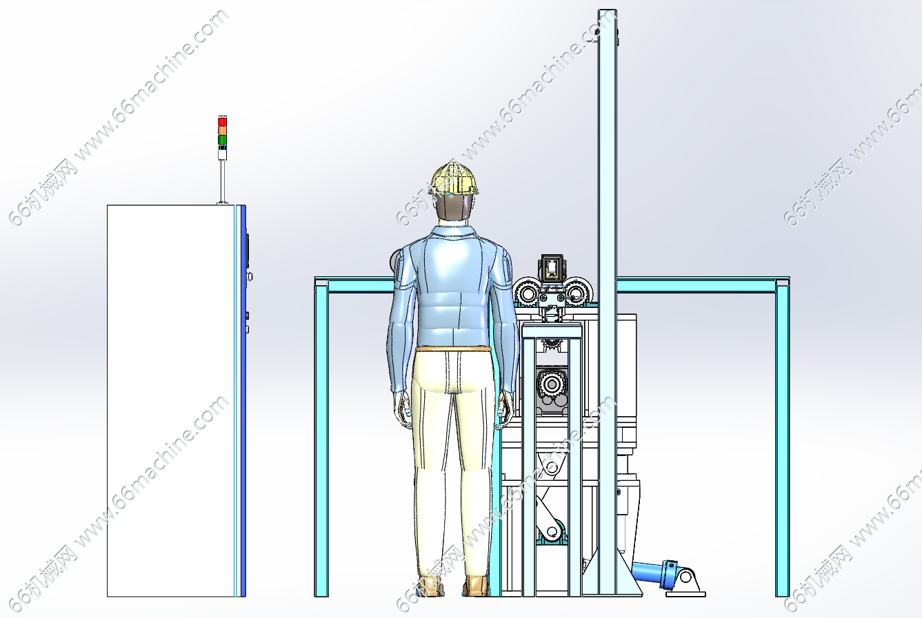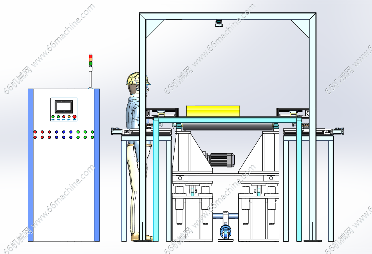 本模型为某企业圆柱件充物两端深度自动测量设备,主要由升降对辊装置、超声波测量装置、视觉相机、电控柜等组成。可通过视觉和对辊旋转完成工件外圆标识码读取,配备的称重传感器可完成工件自动称重,测量装置可实现对两端填充物深度的精确测量。