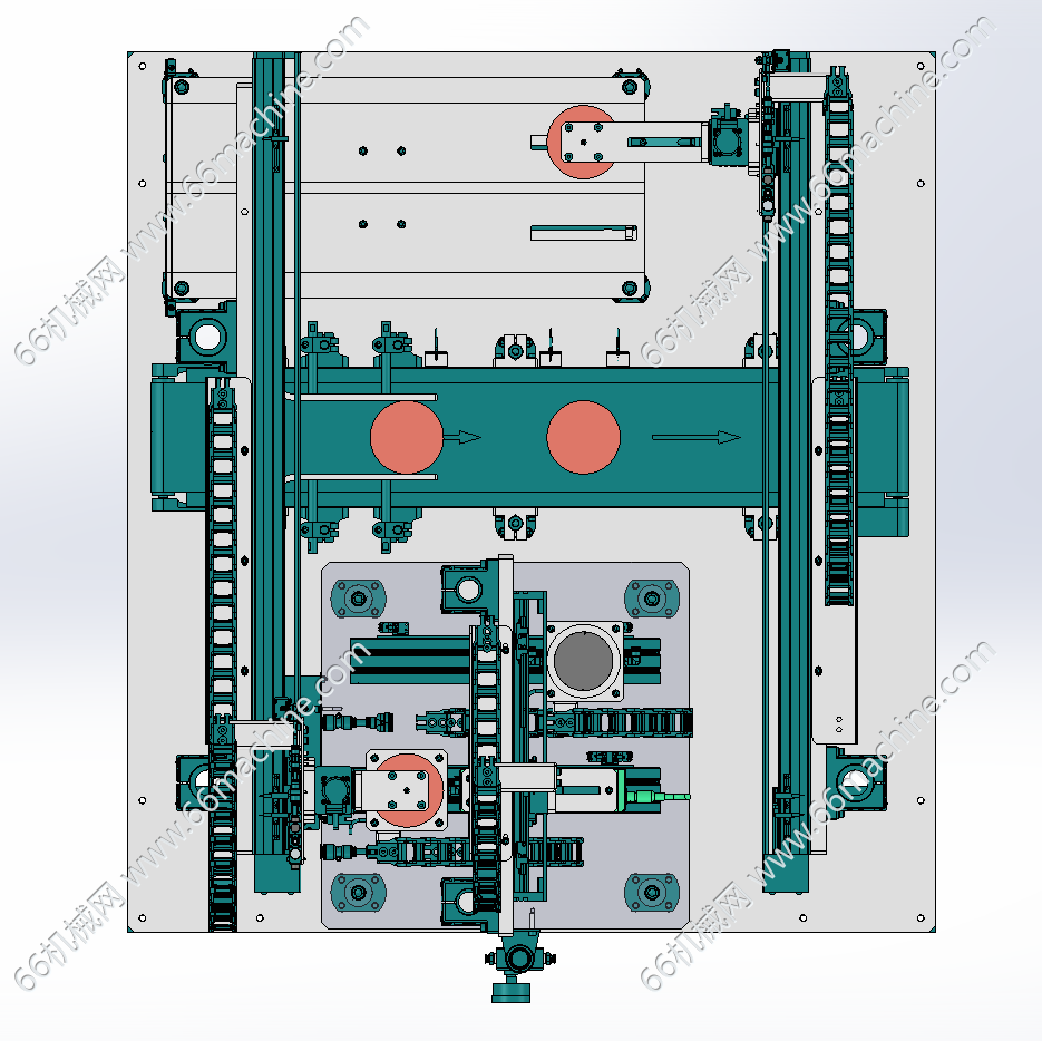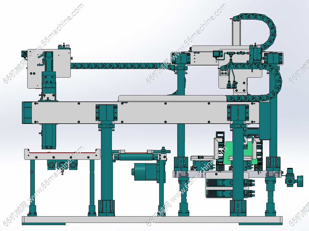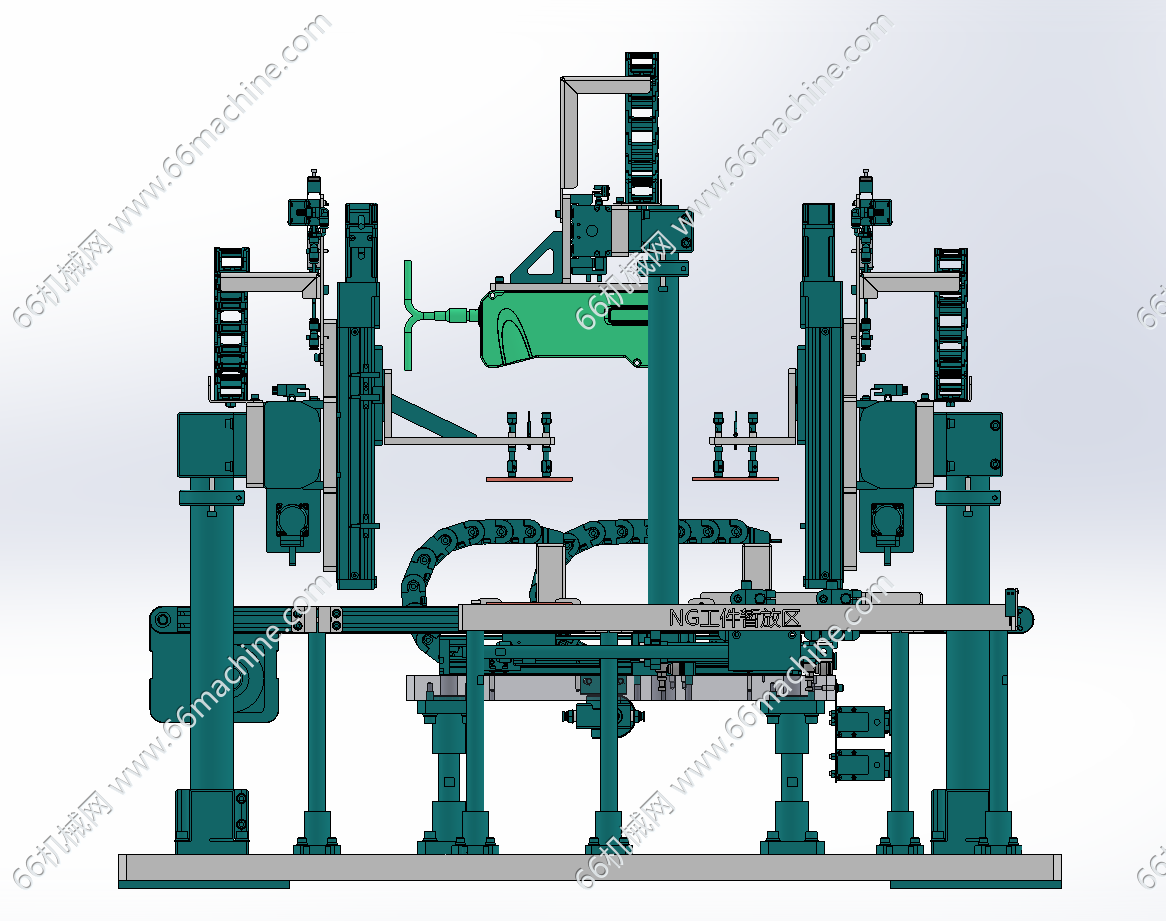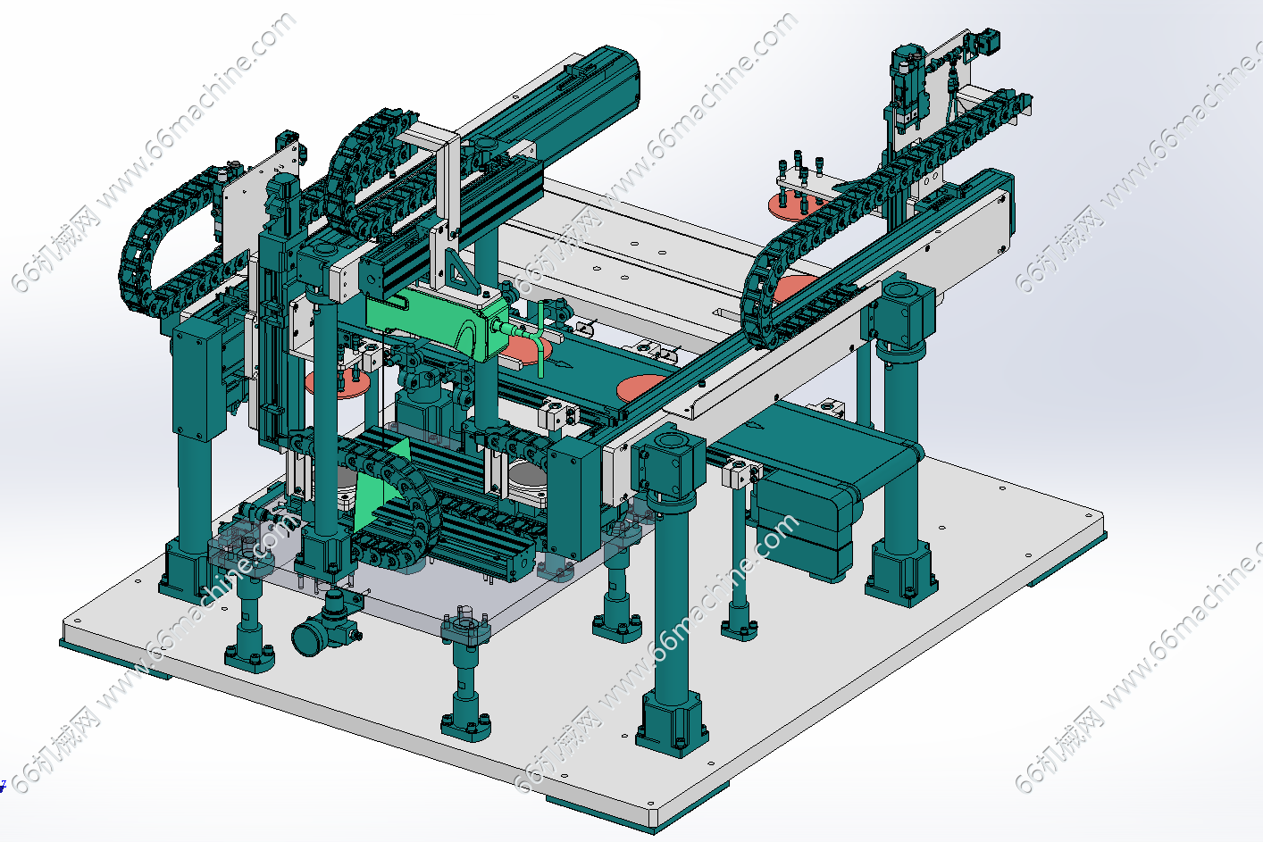 本模型为产品自动上下料视觉检测装置,主要由吸取移栽机构、NG工件暂放台、皮带输送线、视觉相机模组及滑动载台组成,适用于各种产品的自动上料及视觉检测作业,可剔除NG品,欢迎参考!