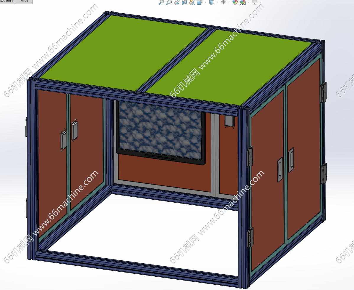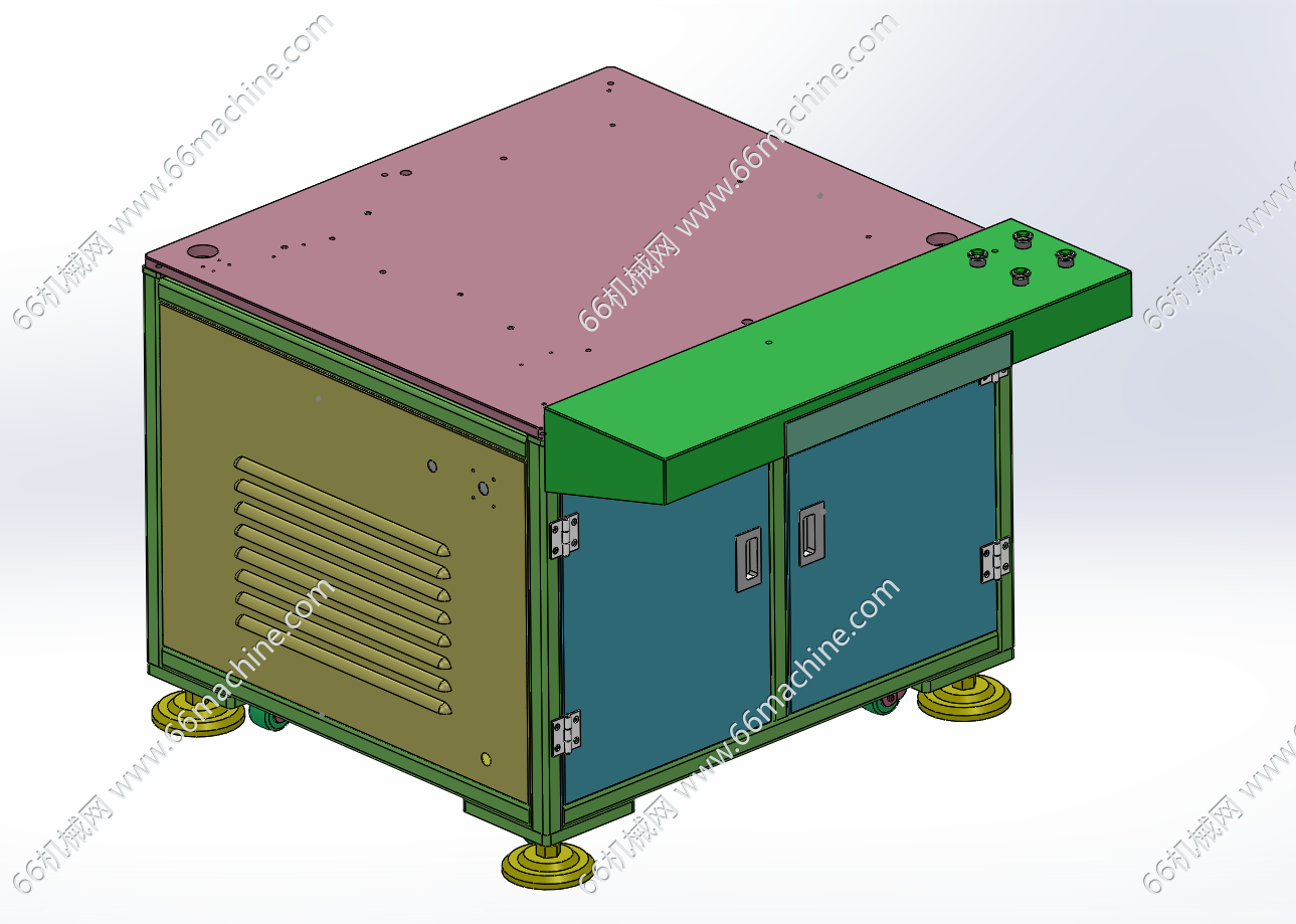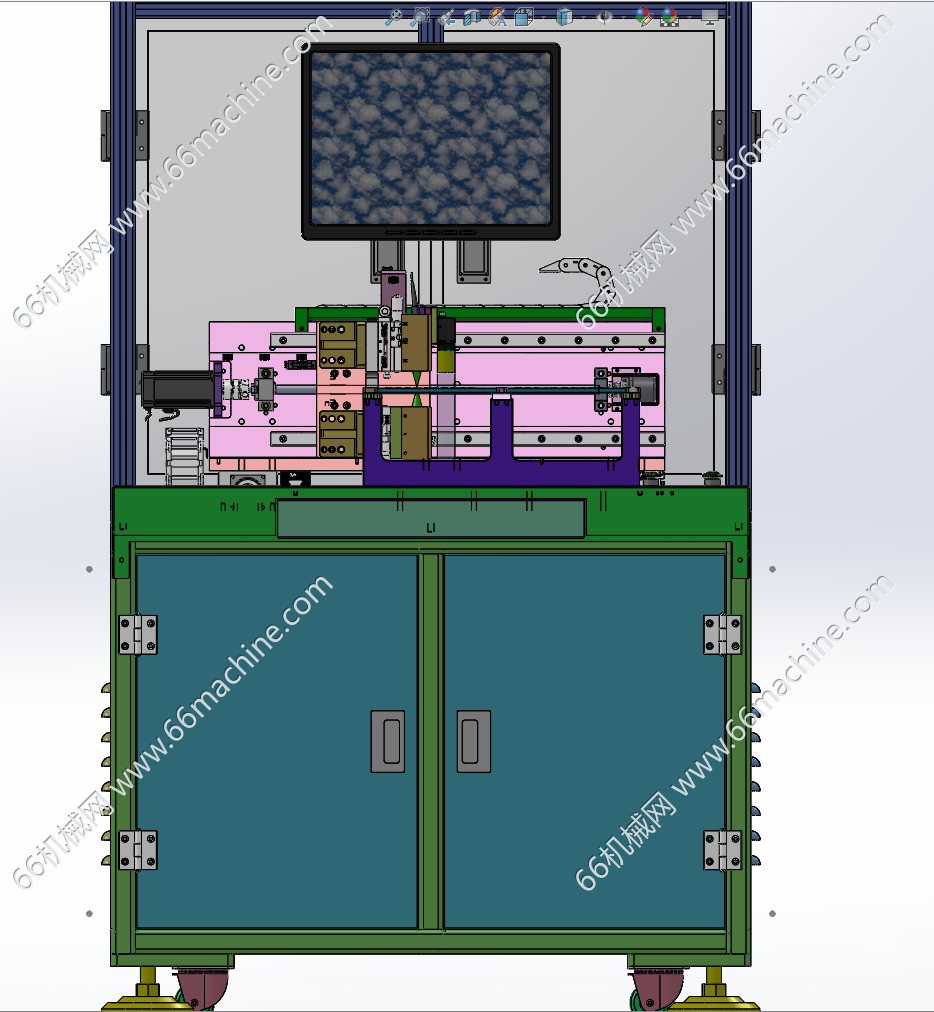 本模型为载具内产品激光厚度检测机,主要由下机架、机罩、载具、激光检测模组等组成,人工将小件产品放置在载具内,视觉引导激光模组对其进行厚度检测,欢迎下载参考!