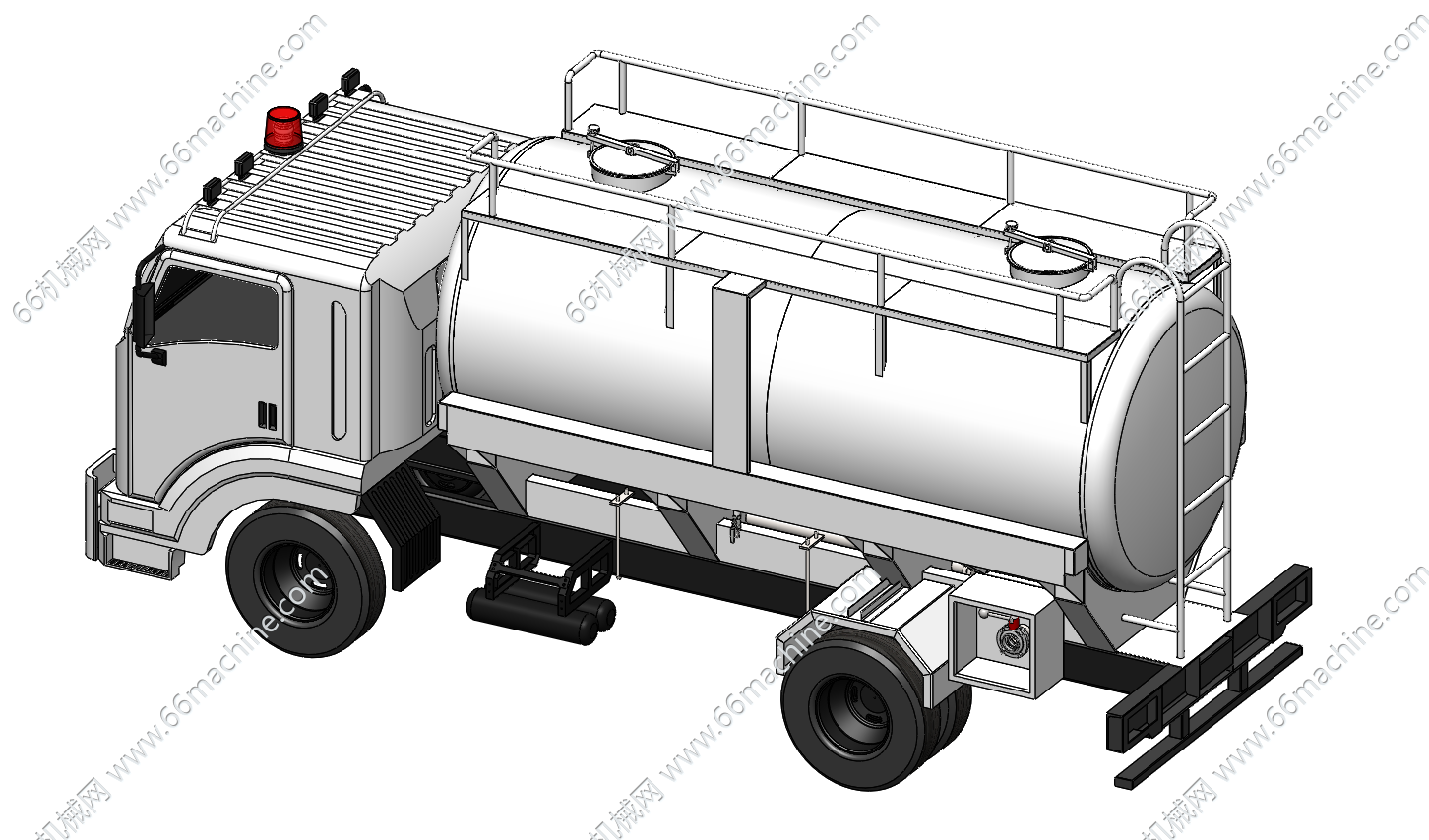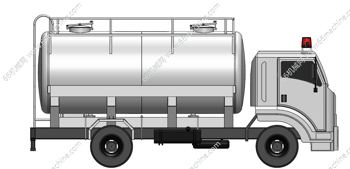 本模型为液体转运罐车(又名槽车),是装运液体、液化气体和粉状货物的专用车辆。具有容积大的优点,能提高运输效率,减少装卸次数,但由于其装运的介质多为易燃、易爆、有毒或具有腐蚀性的物质,所以对运输安全要求极高。广泛应用于石油、化工、食品等行业。