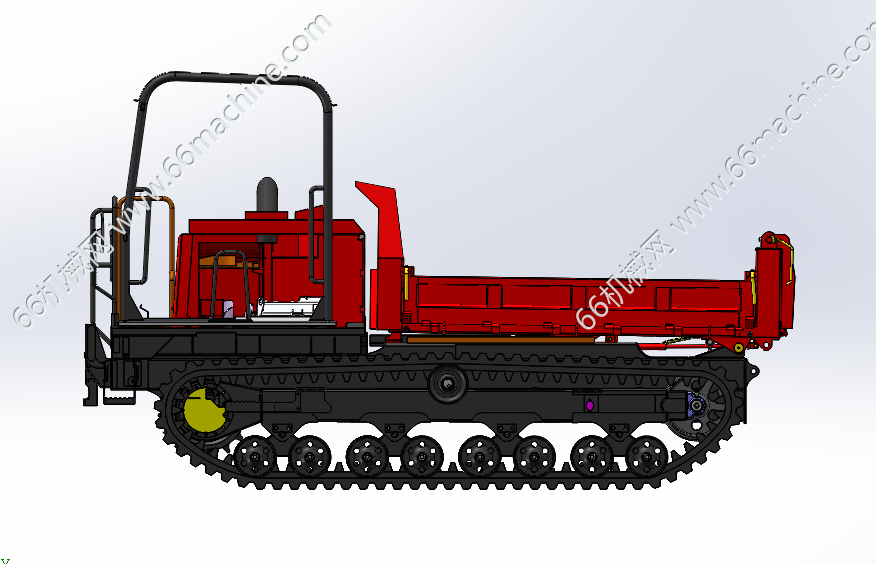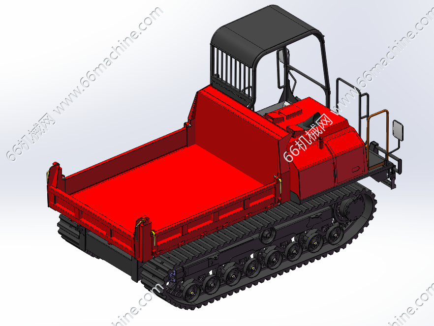 本模型为C50R-5吨履带运输车的基本结构图,是根据图片、零件图册等资料绘图的,仅用于参考。履带底盘作为动力行走。前面是驾驶室。后面是车厢,可液压自卸。车厢侧挡板、后挡板可打开,拆卸,三开门结构。