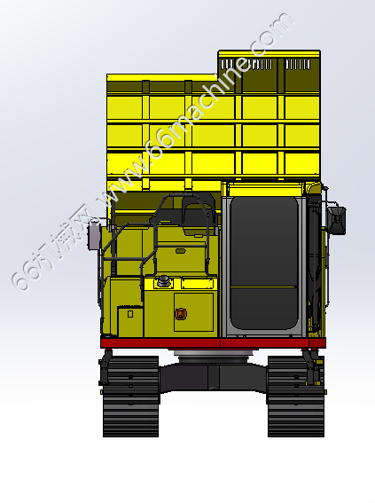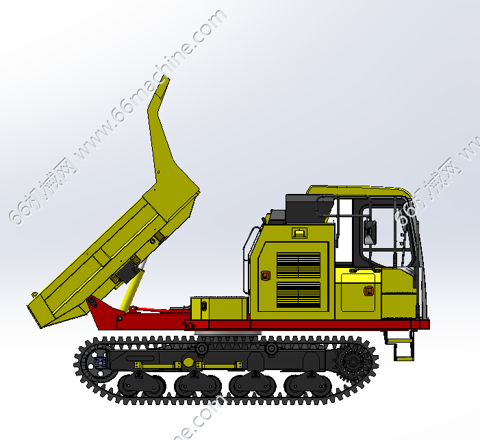 本模型为C60R-3履带运输车的基本结构主要为外观,是参考图片,老版本零件图册等资料绘图的,仅用于参考。履带底盘作为动力行走。底盘之上采用全回转结构 前面是驾驶室。后面是车厢,可液压自卸,载重6吨。