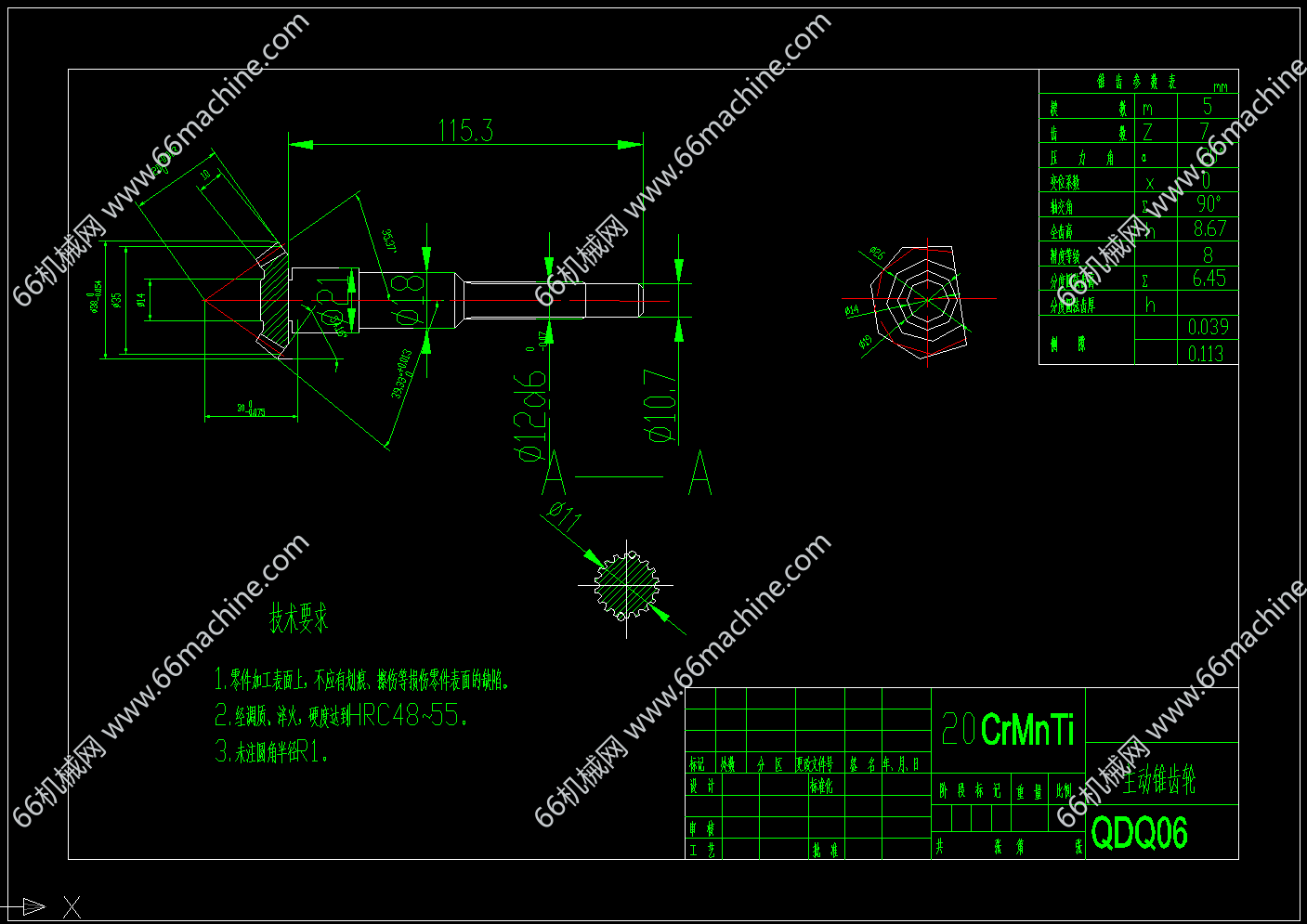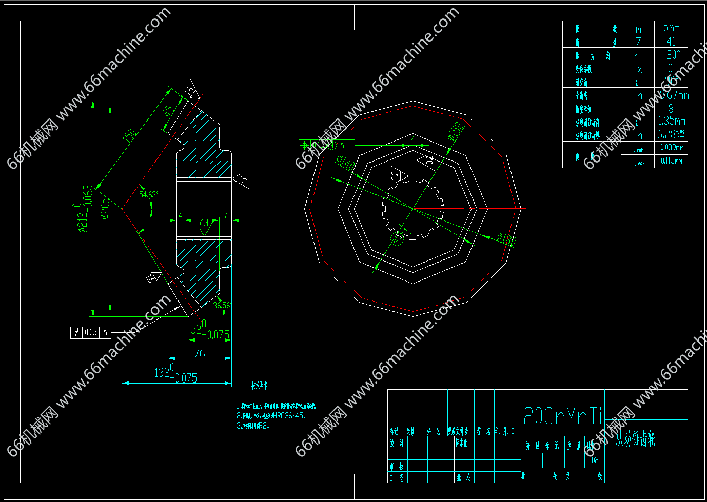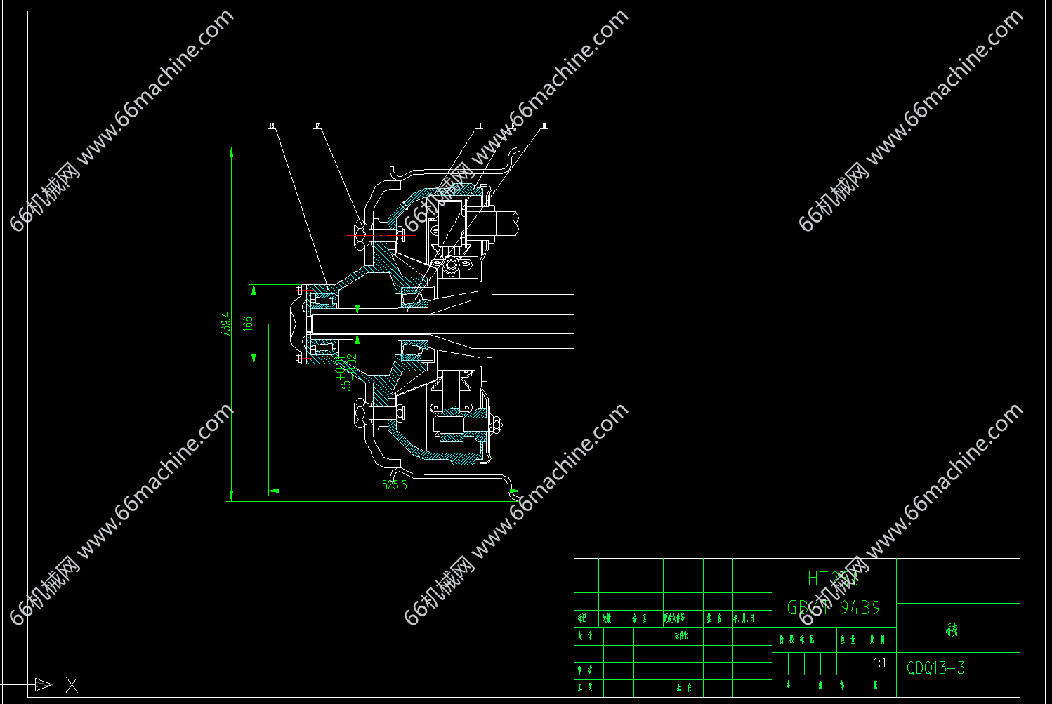 本图纸为载重汽车双级驱动桥,核心作用是实现两次降速增扭,以满足车辆(尤其是货车、客车、越野车等需要大扭矩的车型)在爬坡、重载等工况下的动力需求,同时改变动力传递方向(将传动轴的水平动力转为驱动车轮的垂直动力)。