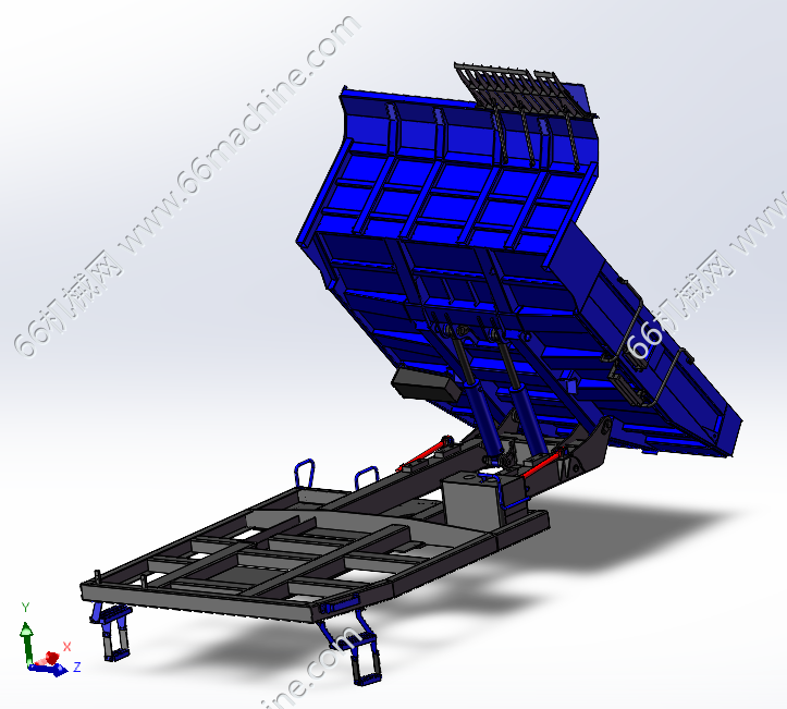 本模型为新型履带自卸运输车的基本结构 ,是参考图片,图册等资料绘图的,仅用于参考。履带底盘作为动力行走。底盘之上采用全回转结构 前面是驾驶室。后面是车厢,可液压自卸,载重11吨起。