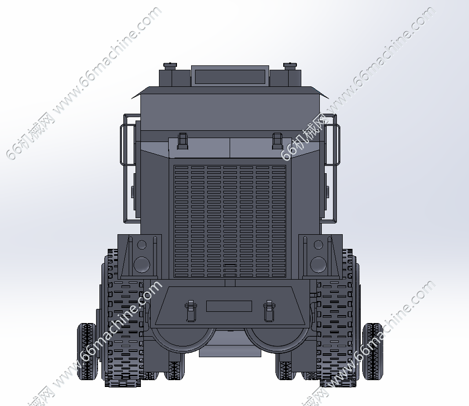 本模型为多轴低平板半挂车,车头为8×8全驱重型军用牵引车,采用装甲化驾驶室设计,配备大尺寸越野轮胎与多轴驱动结构,具备极强的越野通过性和重载牵引能力,车头集成了登车梯、防护格栅、车载设备接口等军用设计;后方连接的是多轴低平板半挂车,平板表面设有系留槽与固定点,用于固定坦克、装甲车等重型装备,多轴轮组设计用于分散超大载荷,挂车还配备了液压支撑腿,用于装卸作业时稳定车身。可用于运输重型装甲设备或工程机械。