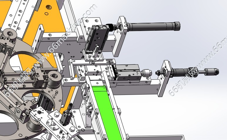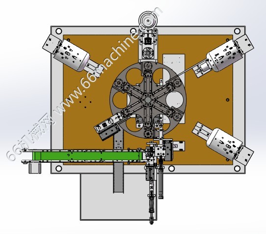这是一款打磨设备,属于打磨机器,设备自动化程度高,具有自动送料、组装和下料的功能。图纸结构详细,设计合理,具有参考意义。设备组成部分:机架、分度圆盘、打磨机构、钻孔结构、自动送料和输送带。