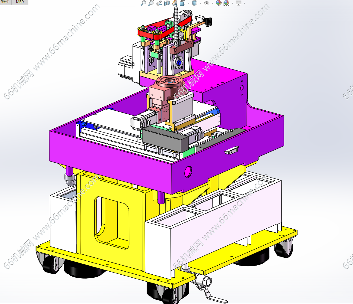 本模型为轴柱件砂带式抛光机,主要由砂带抛光机、三轴夹具等组成,三轴夹具为XY轴滑台及旋转夹具构成,抛光机可更换不同的砂带目数满足不同的抛光度。本机采用湿法抛光模式,带有水路系统,可供大家参考!