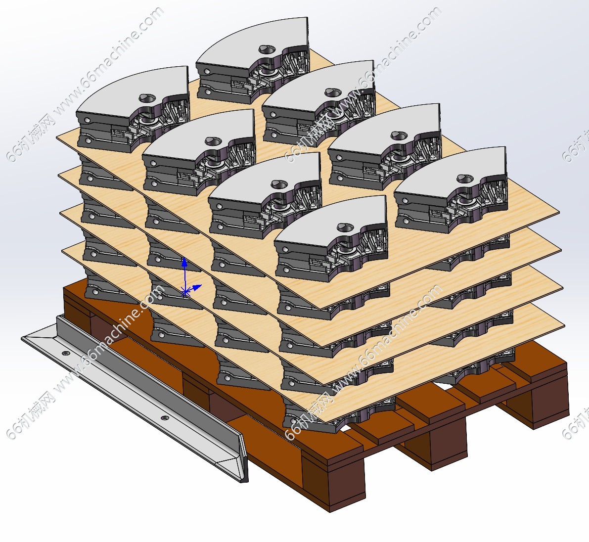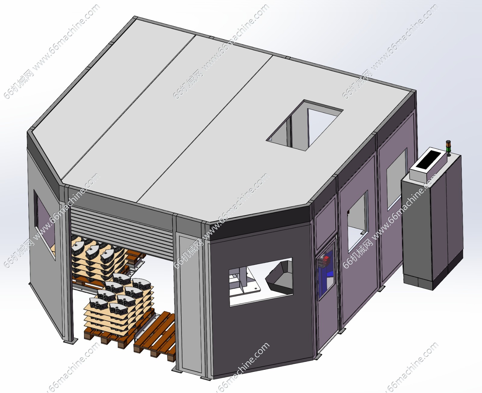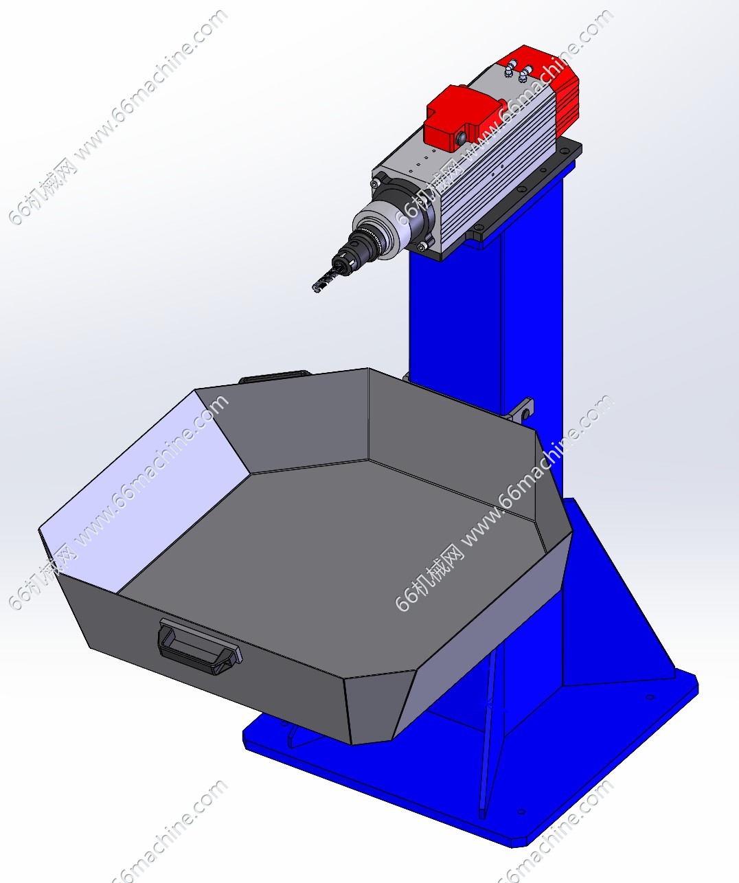 此三维模型为机器人抓件到固定电主轴上打磨去毛刺,来料方式为托盘堆叠来料形式,通过视觉拍照引导机器人从托盘处抓件,放到二次定位台上,机器人从定位台上抓件到电主轴上打磨去毛刺,中间的隔板采用隔板抓手抓取隔板,是成熟产品,欢迎大家下载
