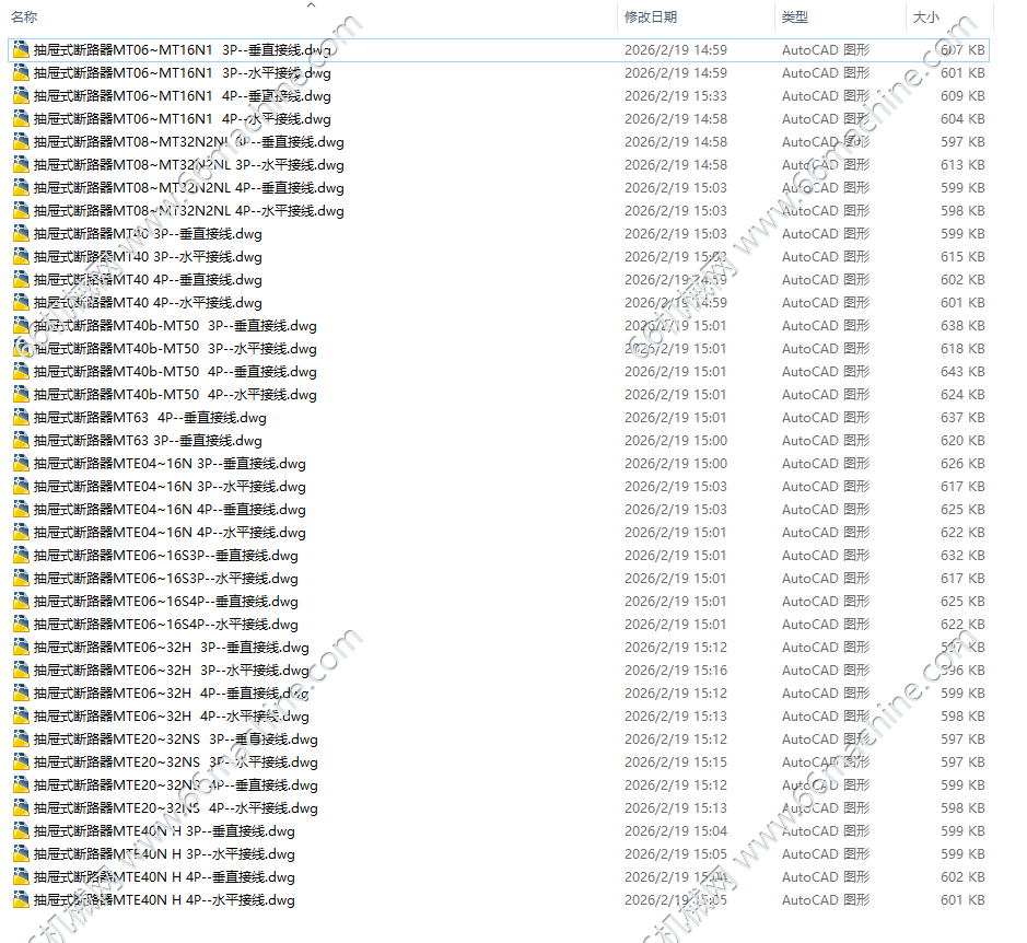 本套图纸为万能式断路器(又称框架断路器或ACB)是一种应用于低压配电系统的高性能开关电器,其核心作用是分配电能并提供全面的电路保护。该资料为施耐德品牌的框架断路器,分抽屉式和固定式、3P和4P、垂直接线和水平接线等分类资料,仅供大家参考!