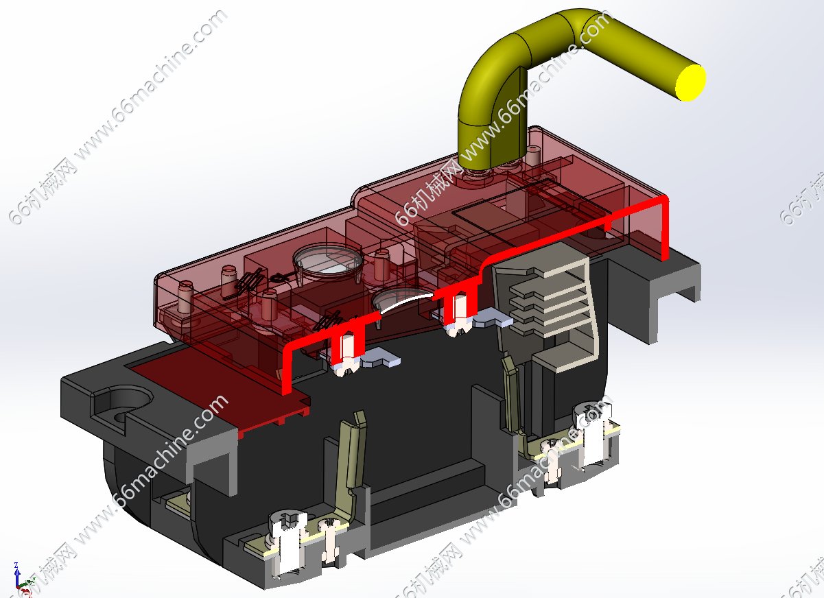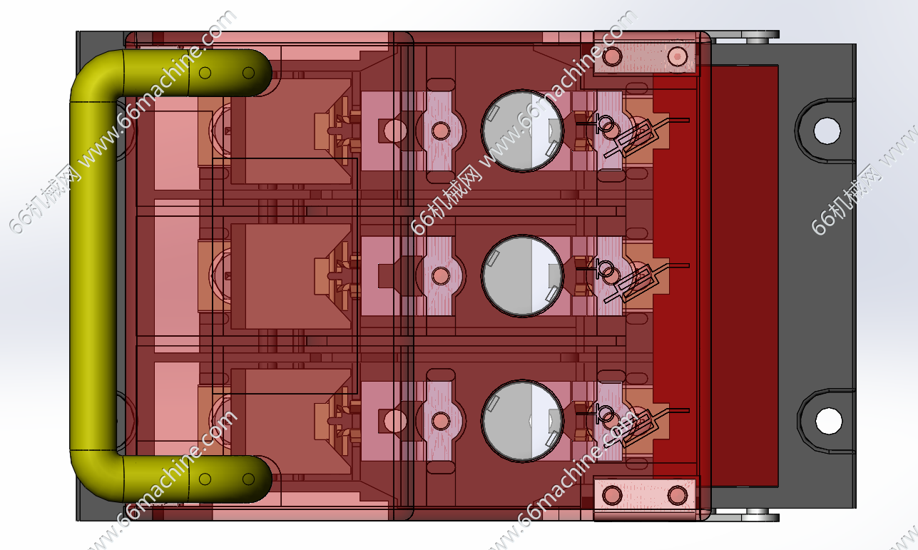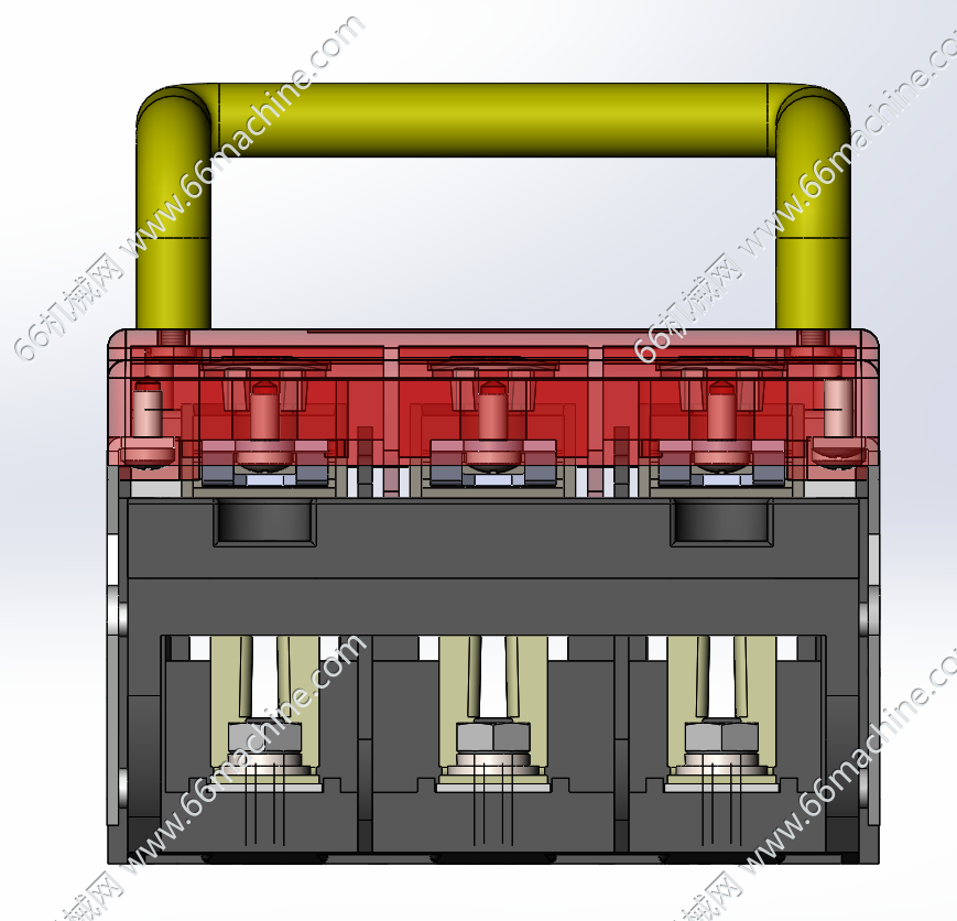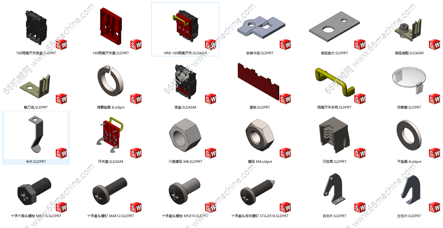 本模型为HR6-160熔断器式隔离开关(刀熔开关),由底座、盖和灭弧室等部分组成。具有开合指示和熔断指示功能,可以实现远程监控,故障报警。外壳由耐弧塑料制成,静触头直接装在底座上,灭弧室拆装方便,采用多片金属灭弧栅,增强了灭弧能力,提高了触头寿命,刀熔开关应用场景为具有高短路电流的配电电路和电动机电路中,作为电源开关、隔离应急开关、并作电路保护用。