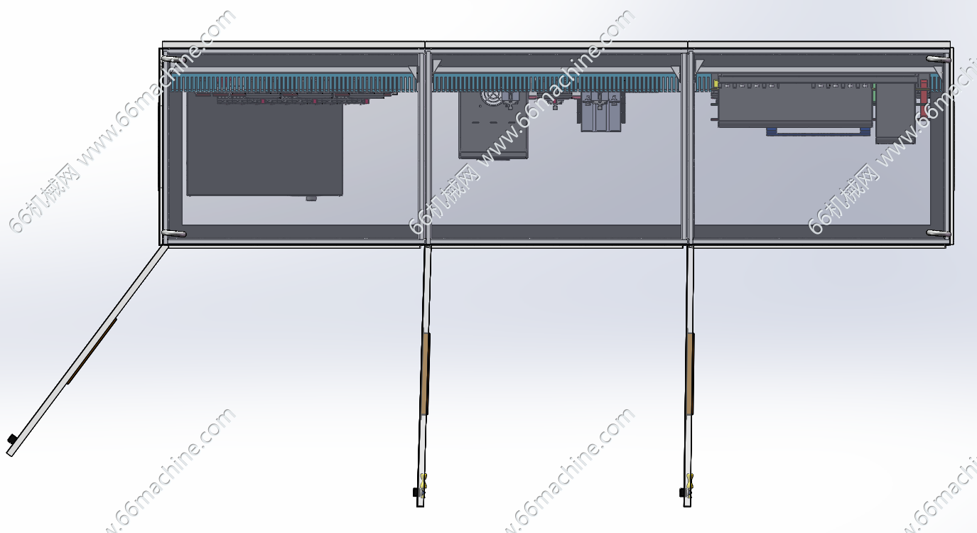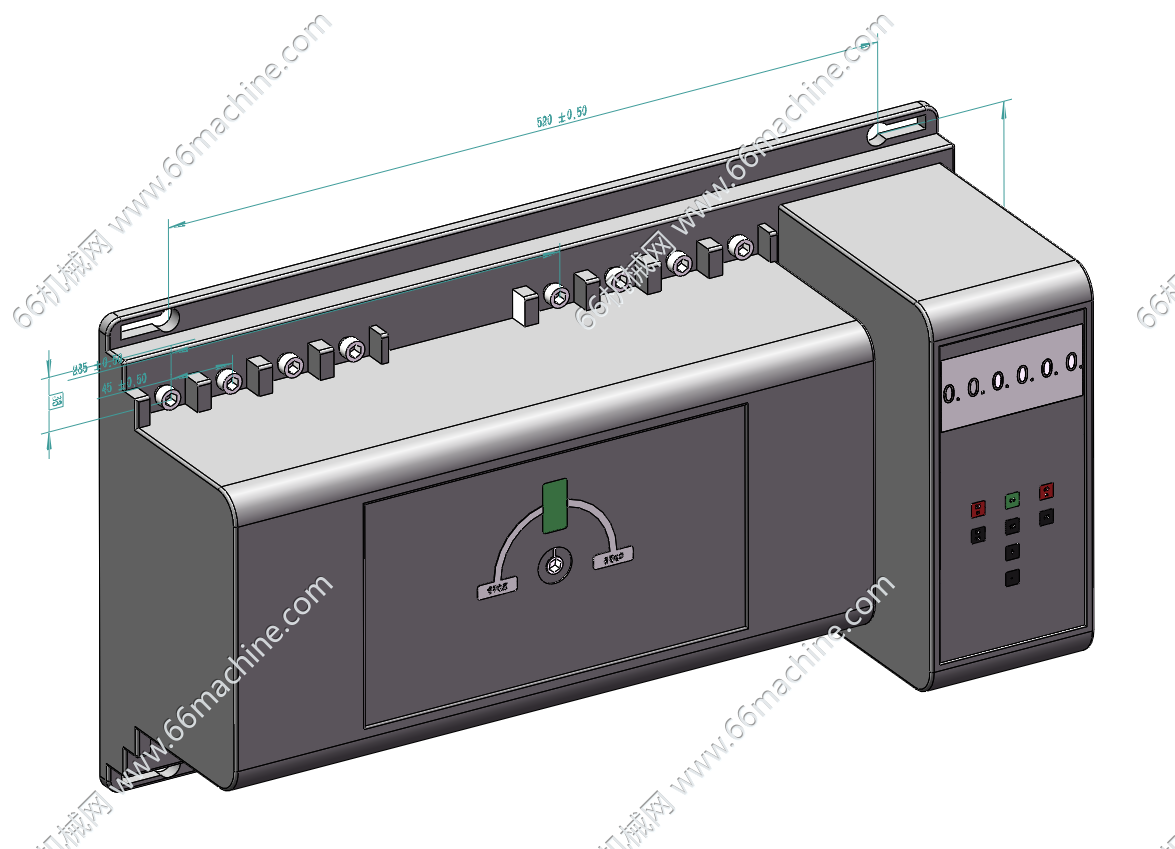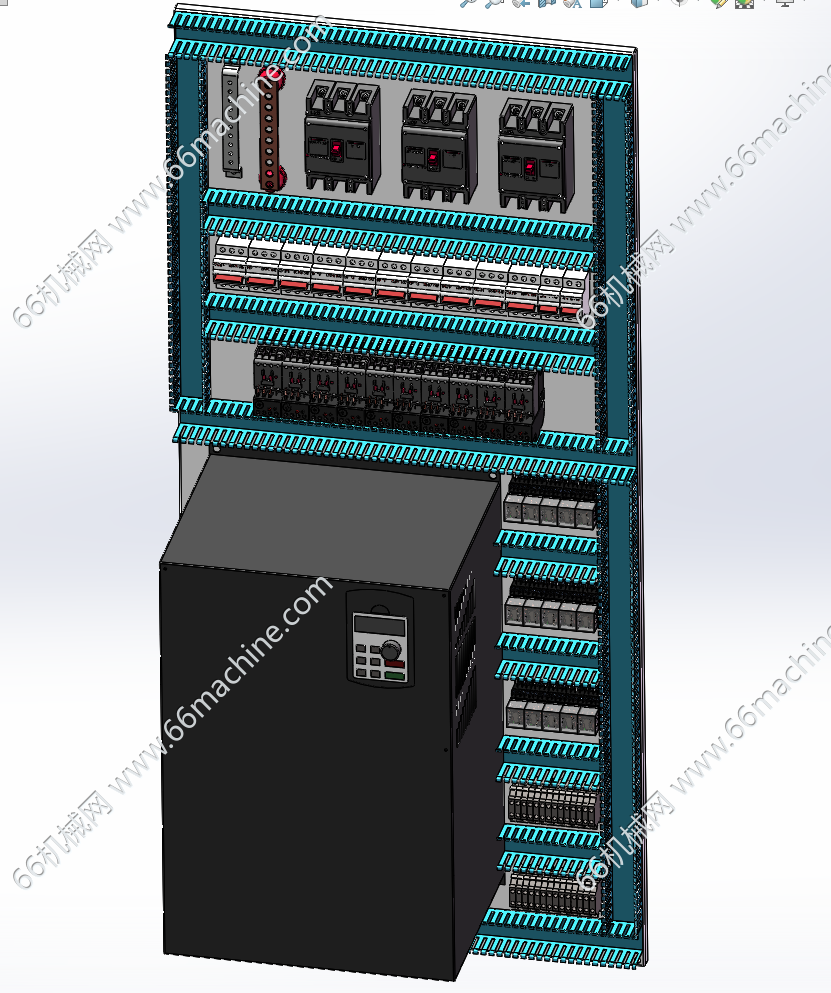 本模型为某企业双电源软启动plc控制,柜体尺寸:2400x600x1800mm,由三柜变频器+软启动旁路+双电源软启动PLC组成。属于三柜组合式低压成套电控系统,左柜为变频控制主柜,集成大功率变频器实现电机无级调速与软启停,中柜为软启动旁路+ PLC 控制中枢,通过软启动器实现电机平滑启动、旁路接触器切换工频运行以降低损耗,并由 PLC 统筹全系统的控制逻辑、联锁保护与通讯监控,右柜为双电源自动切换 + 配电总控柜,通过 ATS 开关实现两路电源的无缝切换以保障供电连续性,整套系统以变频调速节能、软启动保护电网、双电源冗余供电、PLC 集中控制为核心,采用变频与软启回路双重联锁、分级配电保护等设计,兼具高可靠性、节能性与自动化水平,广泛适用于给排水、暖通、工业生产线等对电机控制与供电连续性要求高的关键负载场景。