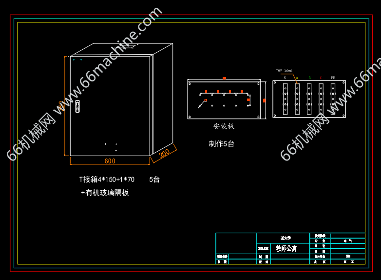 本图纸是某大学教师公寓-施耐德开关-成套配电箱动力柜深化图箱体图。该项目使用的是施耐德开关。根据客户的原图纸,按对应的开关品牌排布,设计出配电箱箱体图,供钣金厂生产箱子用。图纸包含多用户电表箱、户外箱、动力柜、基业箱、风机控制箱、双电源箱、水泵控制箱、T接箱等等。原理图包括星三角启动原理图、单速风机控制原理图、双速风机控制原理图、水泵控制原理图等。欢迎参考!