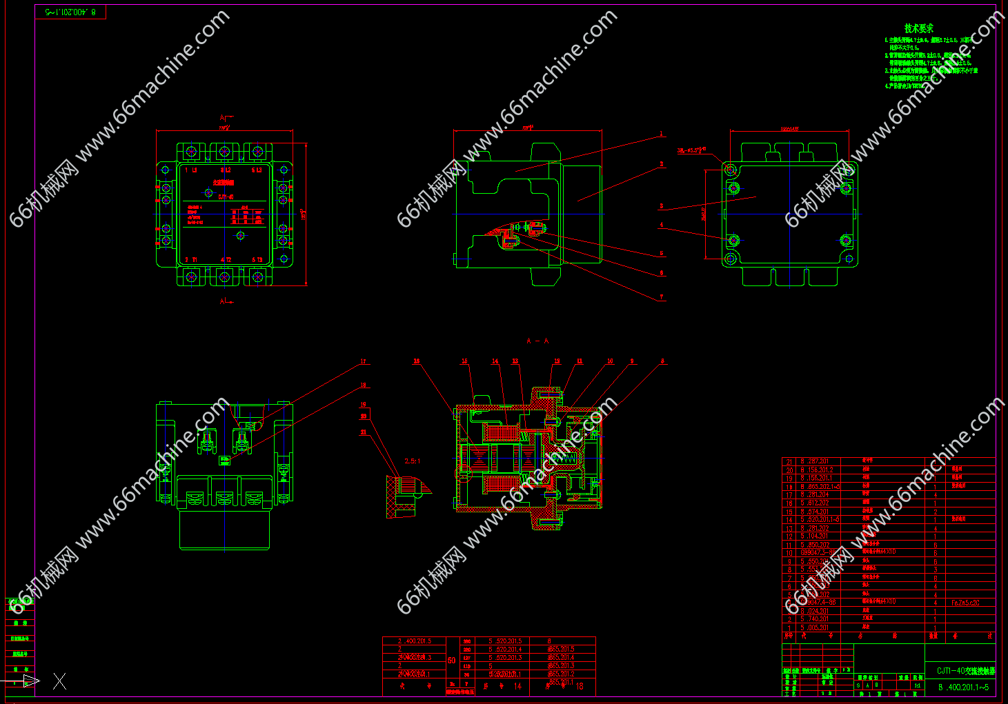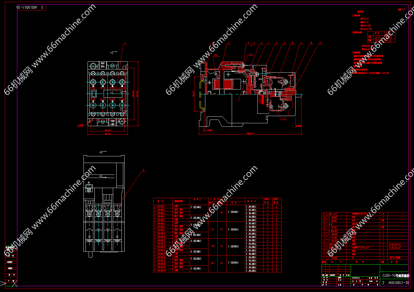 本图纸为某企业CJ系列交流接触器,包含CJ20、CJ40、CJT1等型号,每种规格型号都有内部结构示意图,交流接触器CJ20采用直动式双断点立体布置结构,采用二层二段无灭弧罩设计。交流接触器CJ40可与适当的热继电器或电子式保护装置组合成电动机起动器,以保护可能发生过载的电路。交流接触器CJT1主要用于远距离接通和分断电路,并可与保护装置组合以实现电动机的起动与过载保护。本资料包含13张图纸,欢迎参考!
