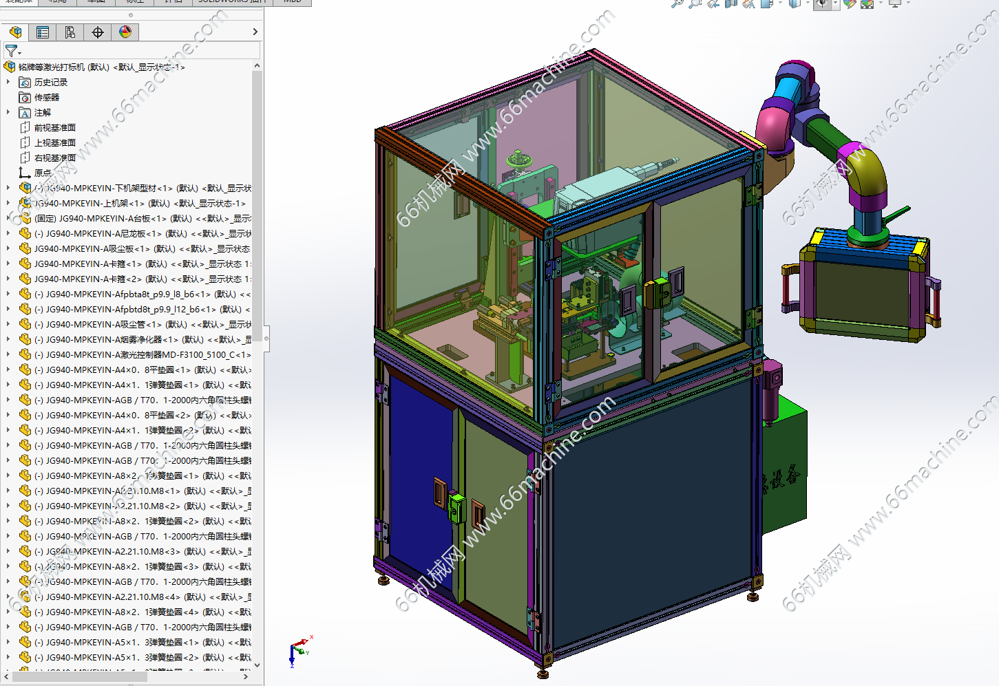 本设备为某企业铭牌等激光打标机,主要由下机架、机罩、可升降激光模组(含视觉检测)、吊臂式控制组件、铭牌出料模组及吸取移送模组等组成,采用激光刻印铭牌信息(如:文字、数字、Logo、二维码等),并进行视觉检查打印标记的完整性及清晰度。该设备也适用于其它产品打标,欢迎下载参考!