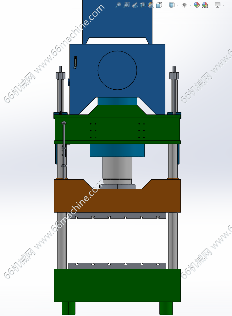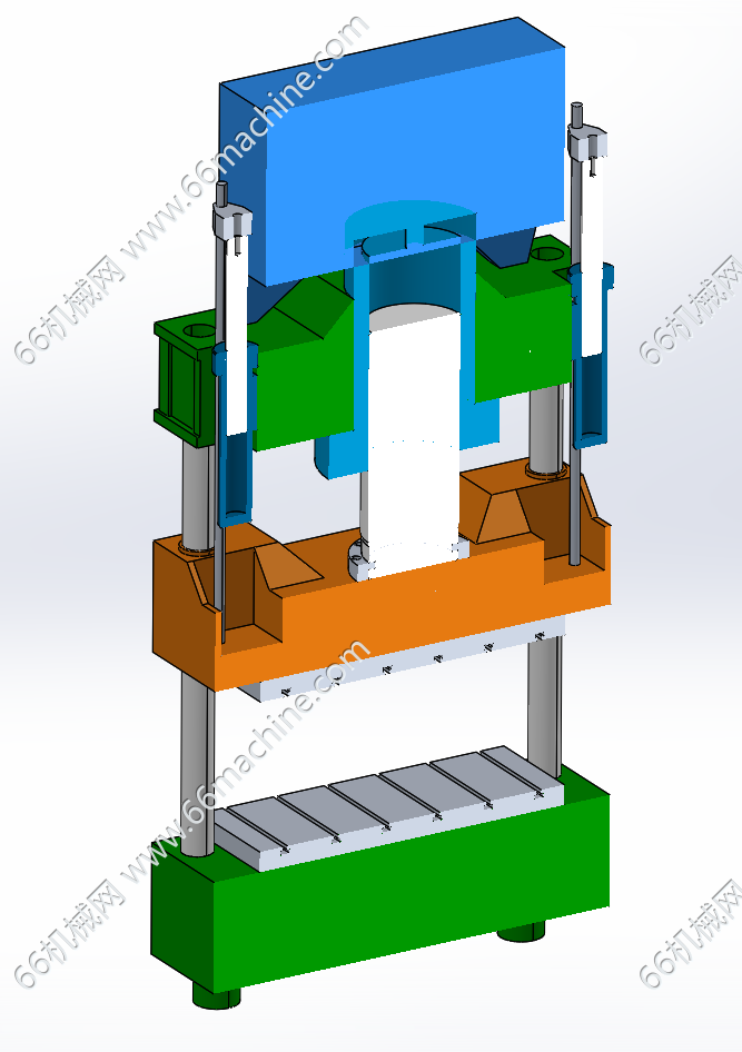 本模型为四导柱液压机,包括液压缸、 横梁、立柱及液压站,通过两侧设置的2组液压缸实现下压,适用于可塑性材料的压制工艺,本模型为x-t格式,欢迎参考!