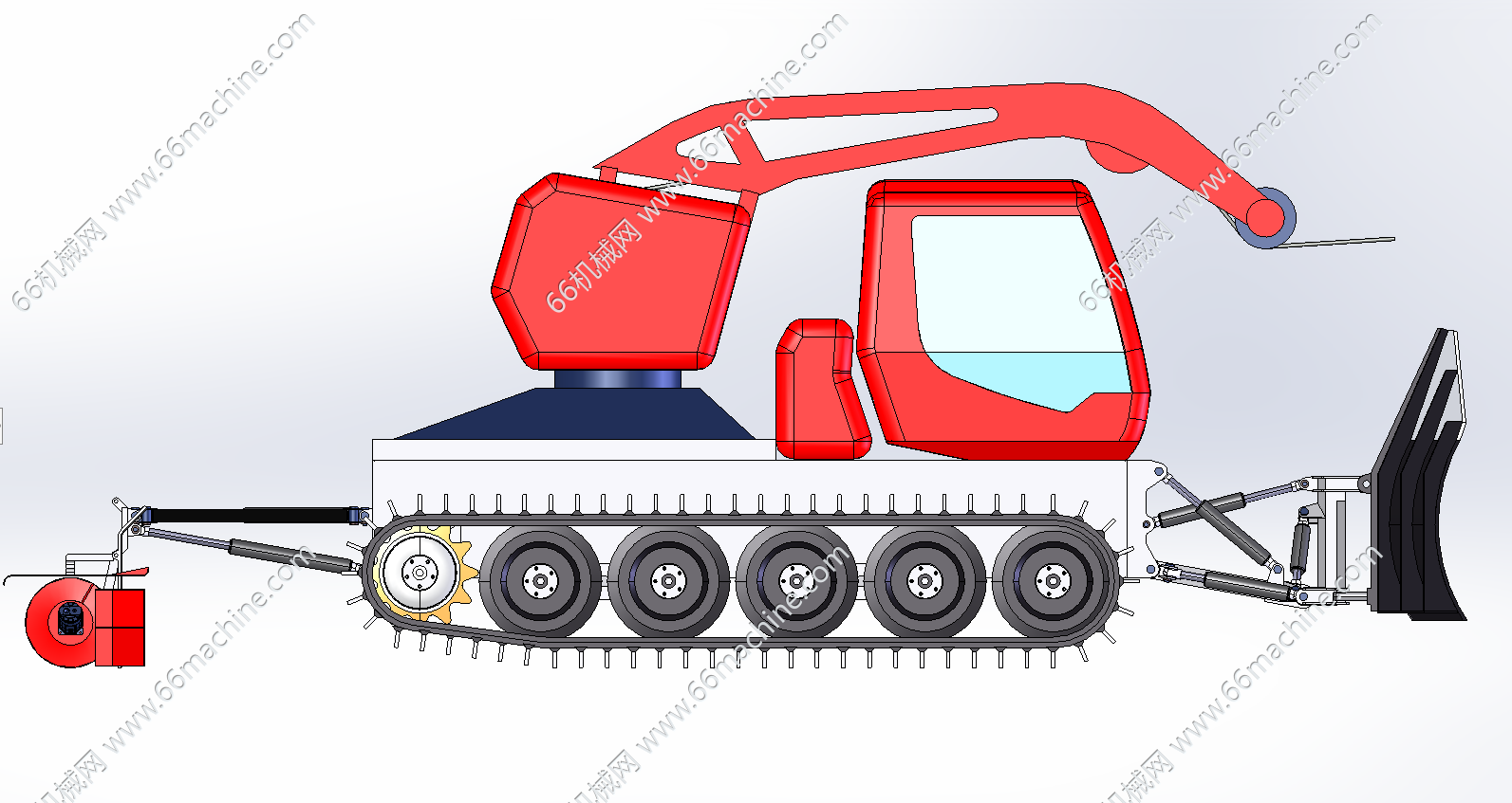 本模型为推雪机(又名除雪机、除雪车),采用履带式底盘,包含推雪机构及破冰滚刀机构,适合于我国北方地区,是道路、机关、单位、学校、停车场、广场、物业小区、花园、非机动车道等广泛选用的冬季清雪的必备机械。