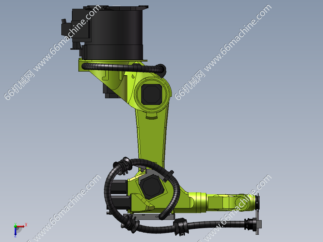 卡(KUKA)6 轴工业机械臂(典型的多关节串联机器人) 6 个自由度:J1-J6 轴协同运动,能让末端法兰到达工作空间内任意位置,并实现任意姿态,灵活性极高。 高负载与精度:KUKA 机械臂通常具备较强负载能力,定位精度可达 ±0.1mm,适合重载、高精度自动化作业。 管线集成设计:拖链式管线布局,既保证运动灵活性,又提升了设备的可靠性与维护性。